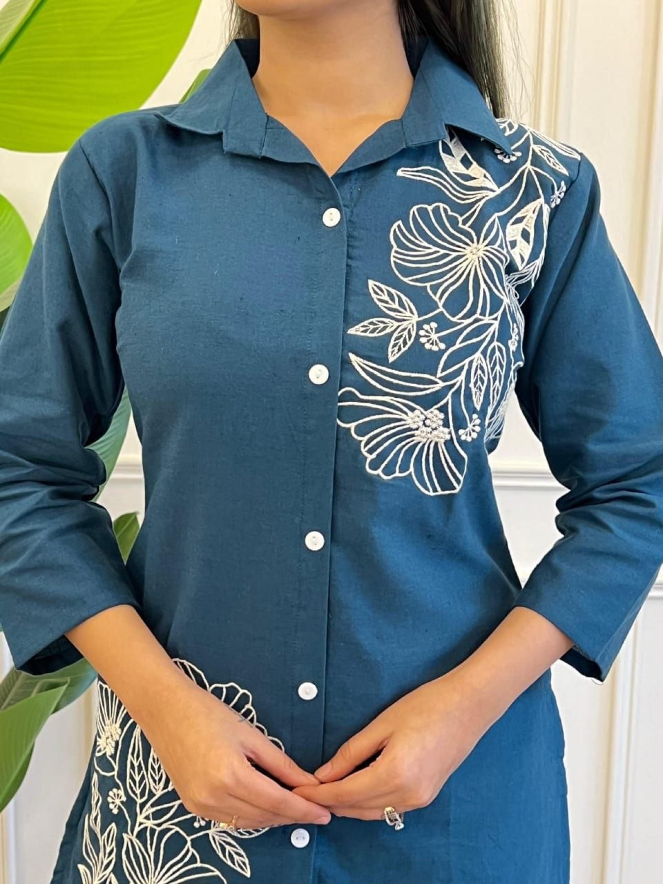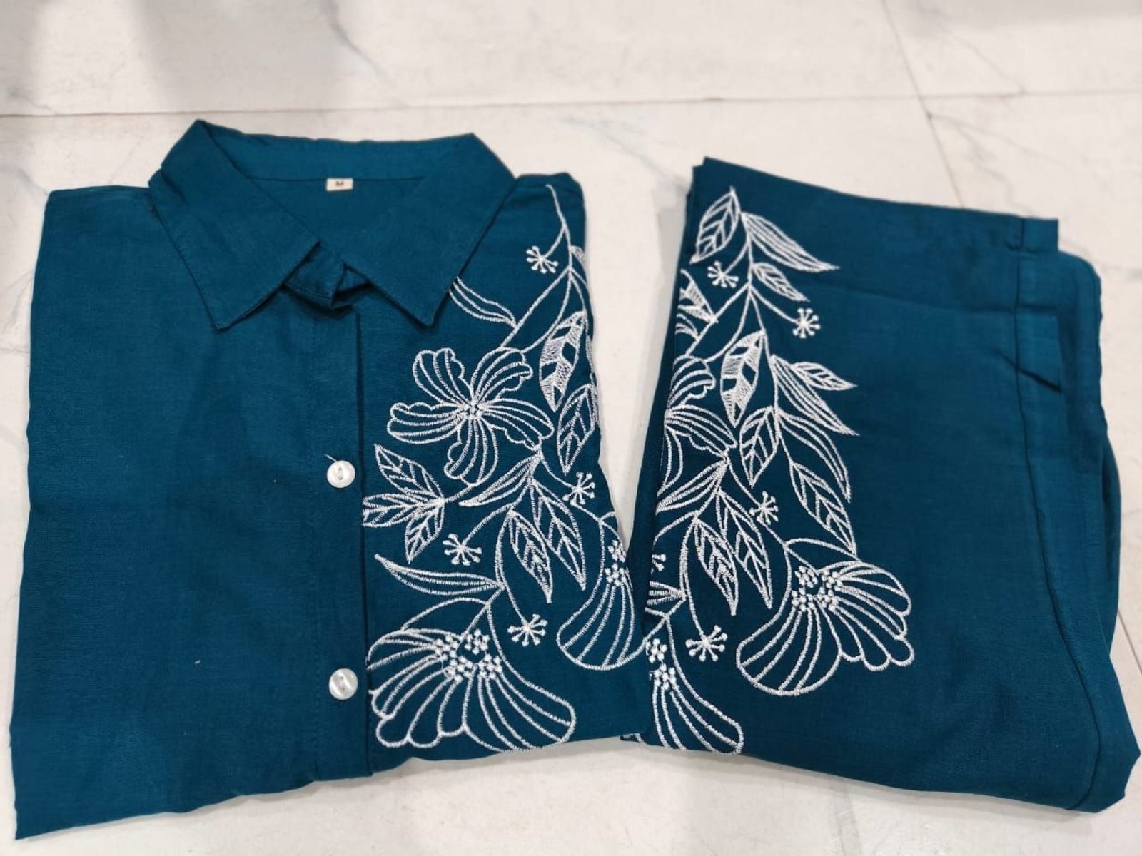 Comfortable cotton co-ord set featuring embroidered kurti and plazzo with pocket design. Lightweight and breathable, perfect for daily wear and summer styling.
