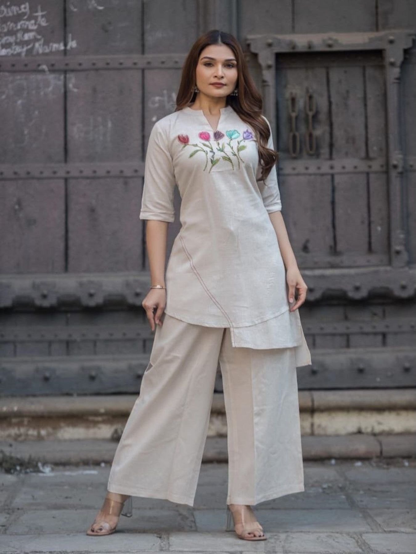 Summer special cotton slub cord set featuring a beautifully embroidered kurti with comfortable plazo. Designed for a classy and breathable look, perfect for daily wear and hot weather styling.