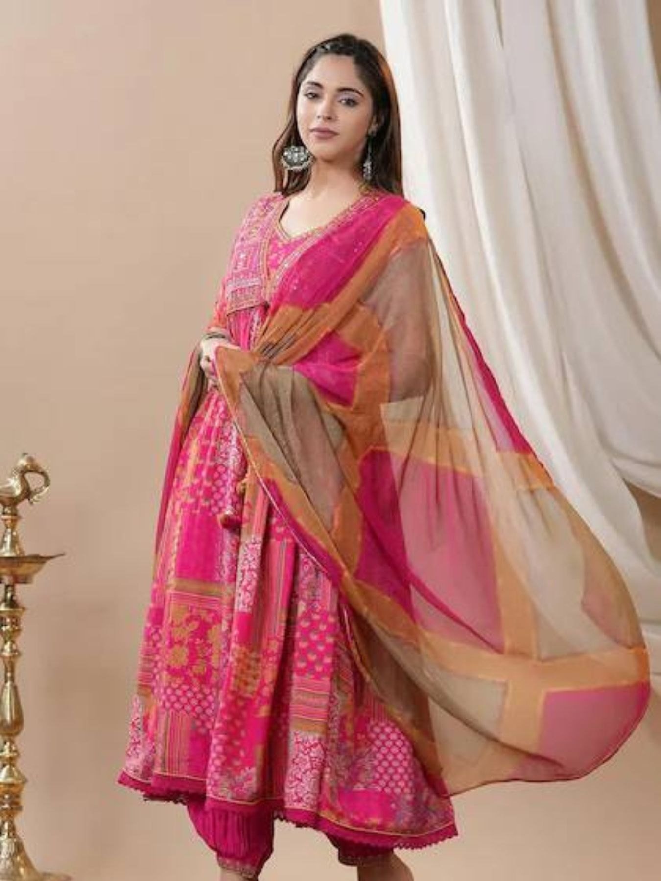 Aliya Cut Special Muslin Party Wear Salwar Kameez with Heavy Zari- Sequence & Afghani Pant