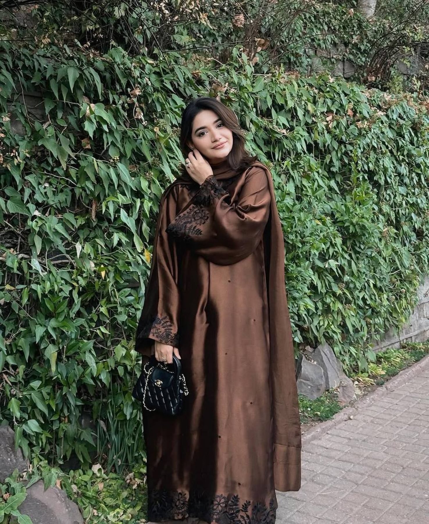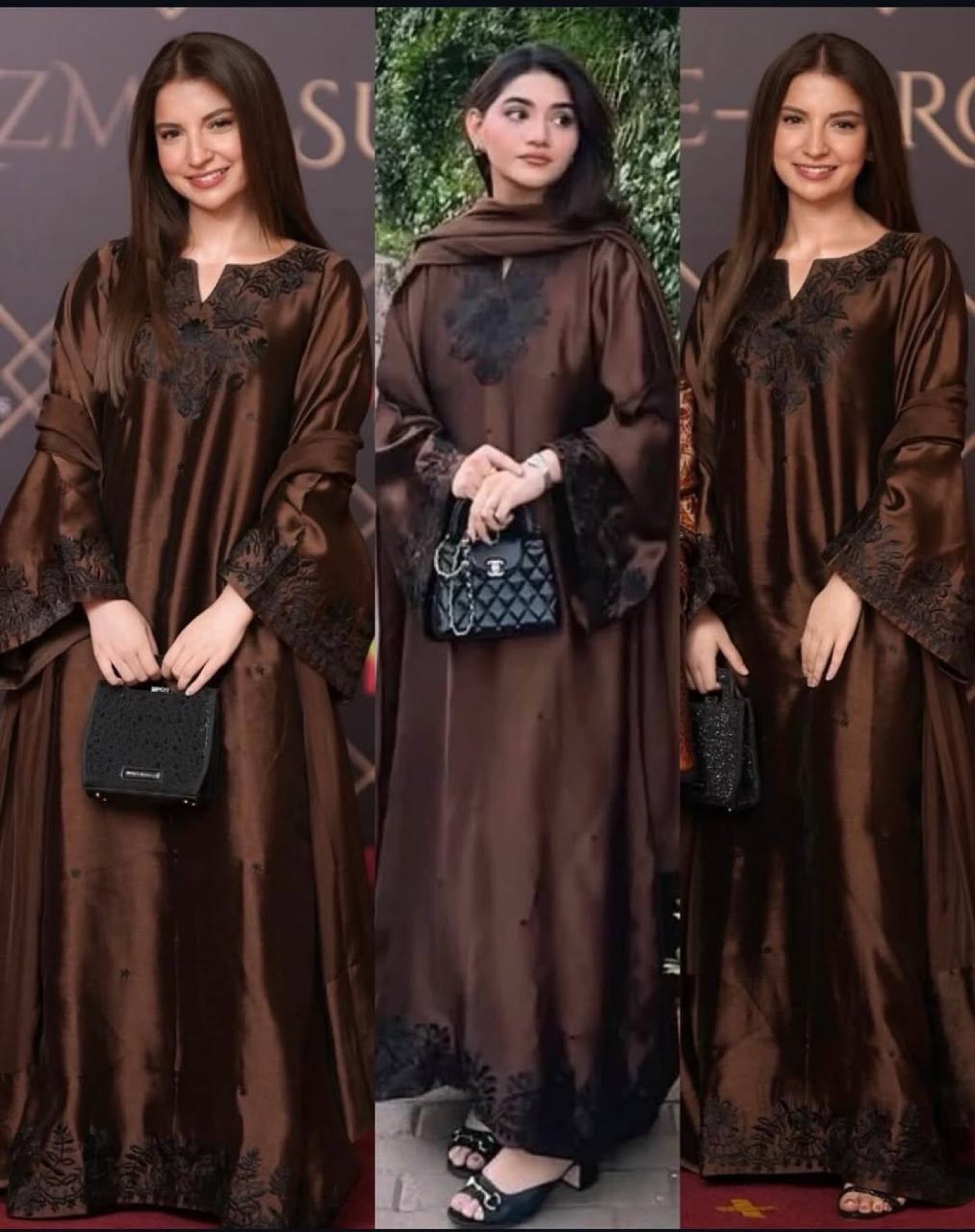 Alluring Brown Satin Mul Chanderi Kaftan Set with Plazzo and Dupatta for Women