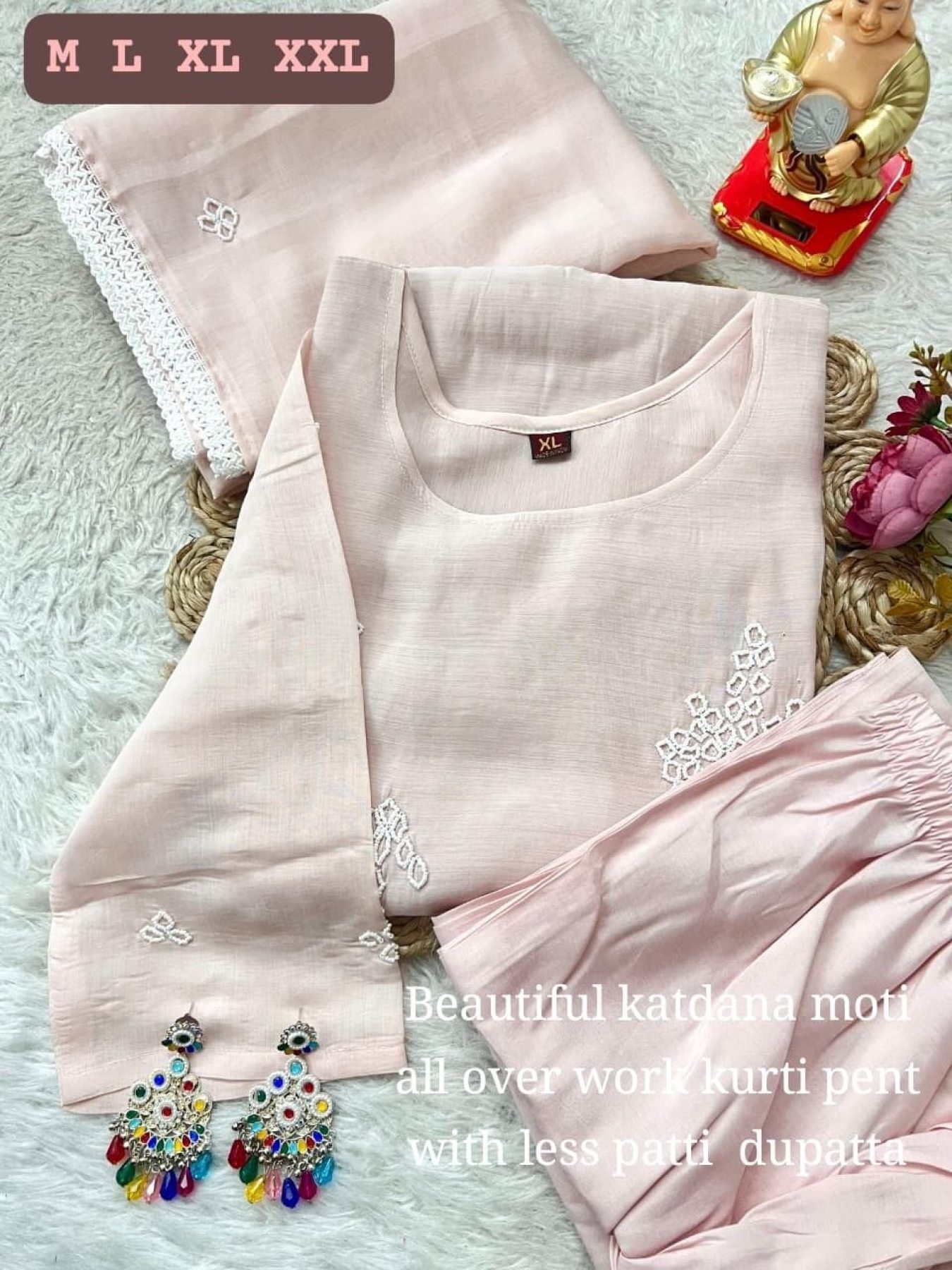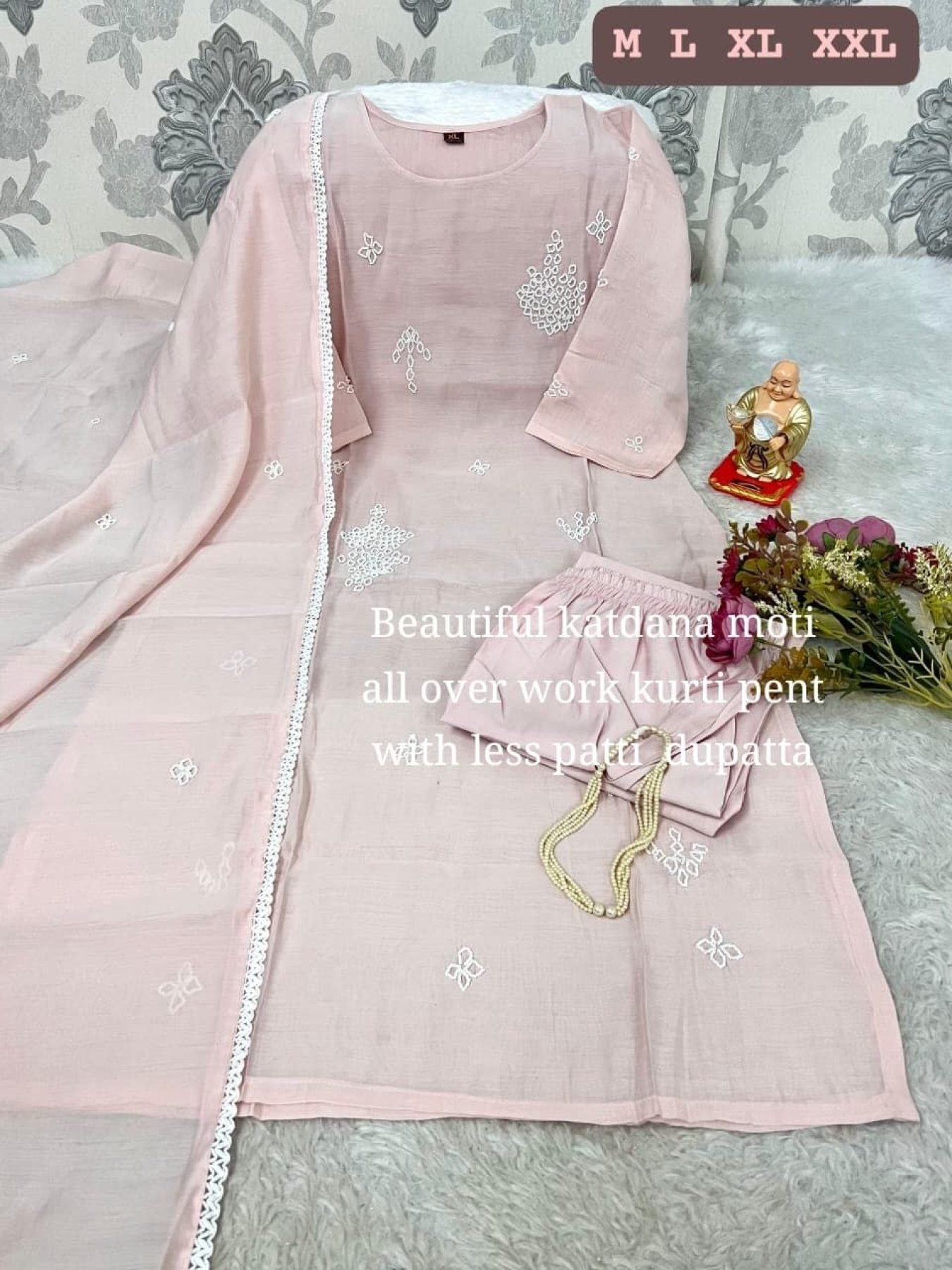 Artistic Baby Pink Pure Chanderi Moti Work Kurti Set for Festive and Office Wear