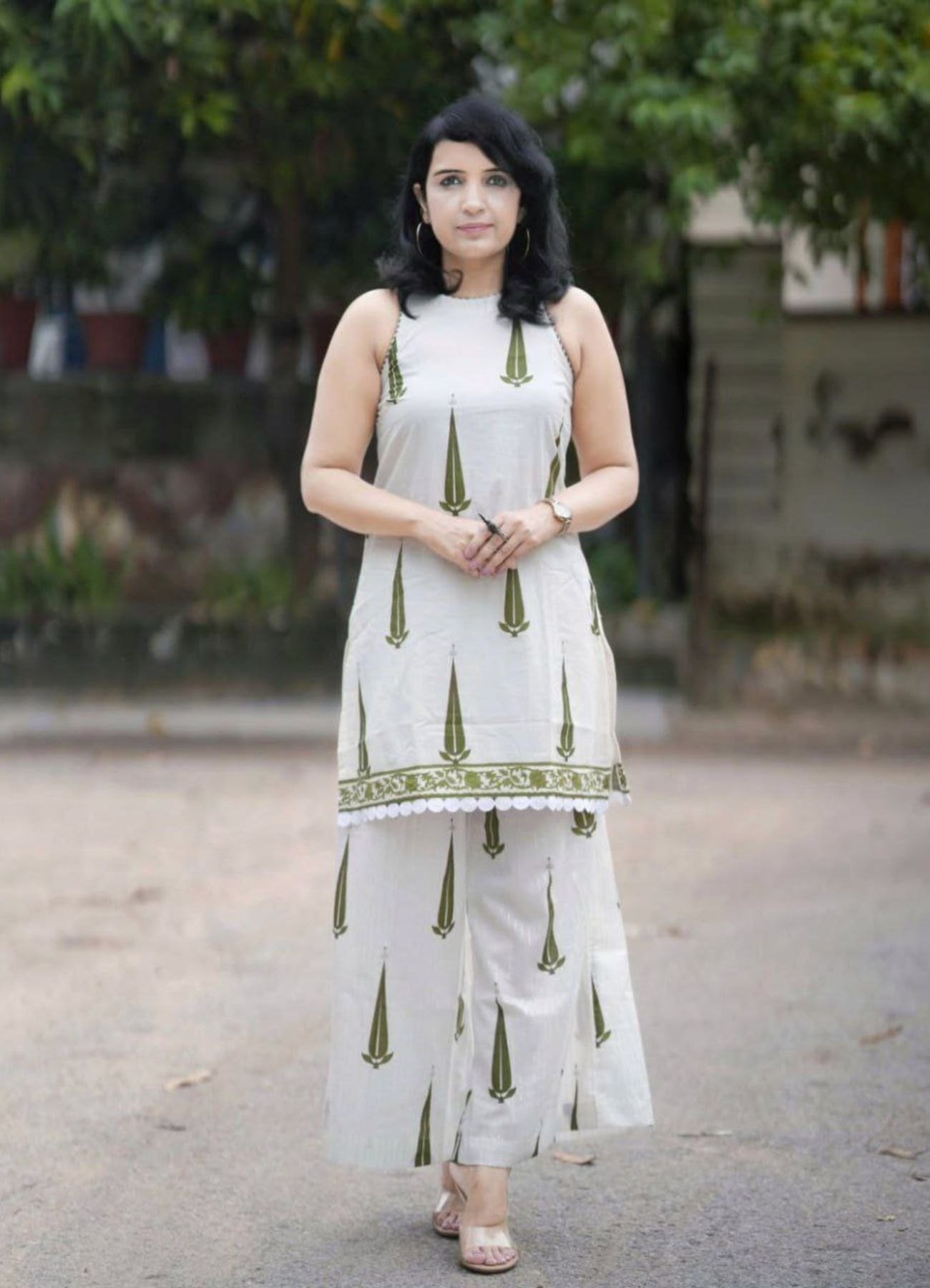 Step into effortless elegance with this Ivory Olive Block Print Kurti Set, designed with a timeless handcrafted pattern. Made from breathable linen cotton fabric, it offers a graceful silhouette and all-day comfort. Perfect for casual outings, office wear, festive gatherings, and boutique collections.