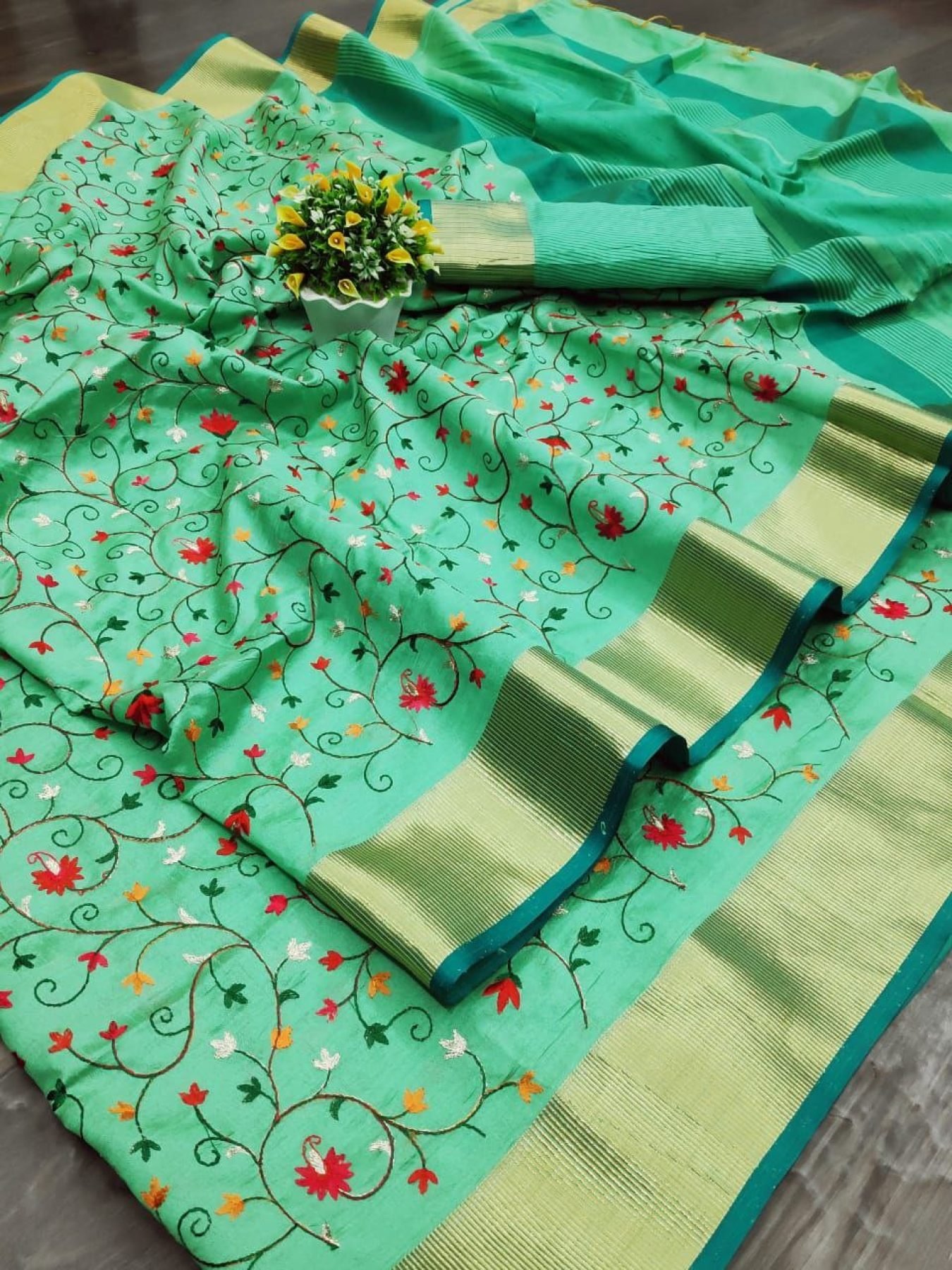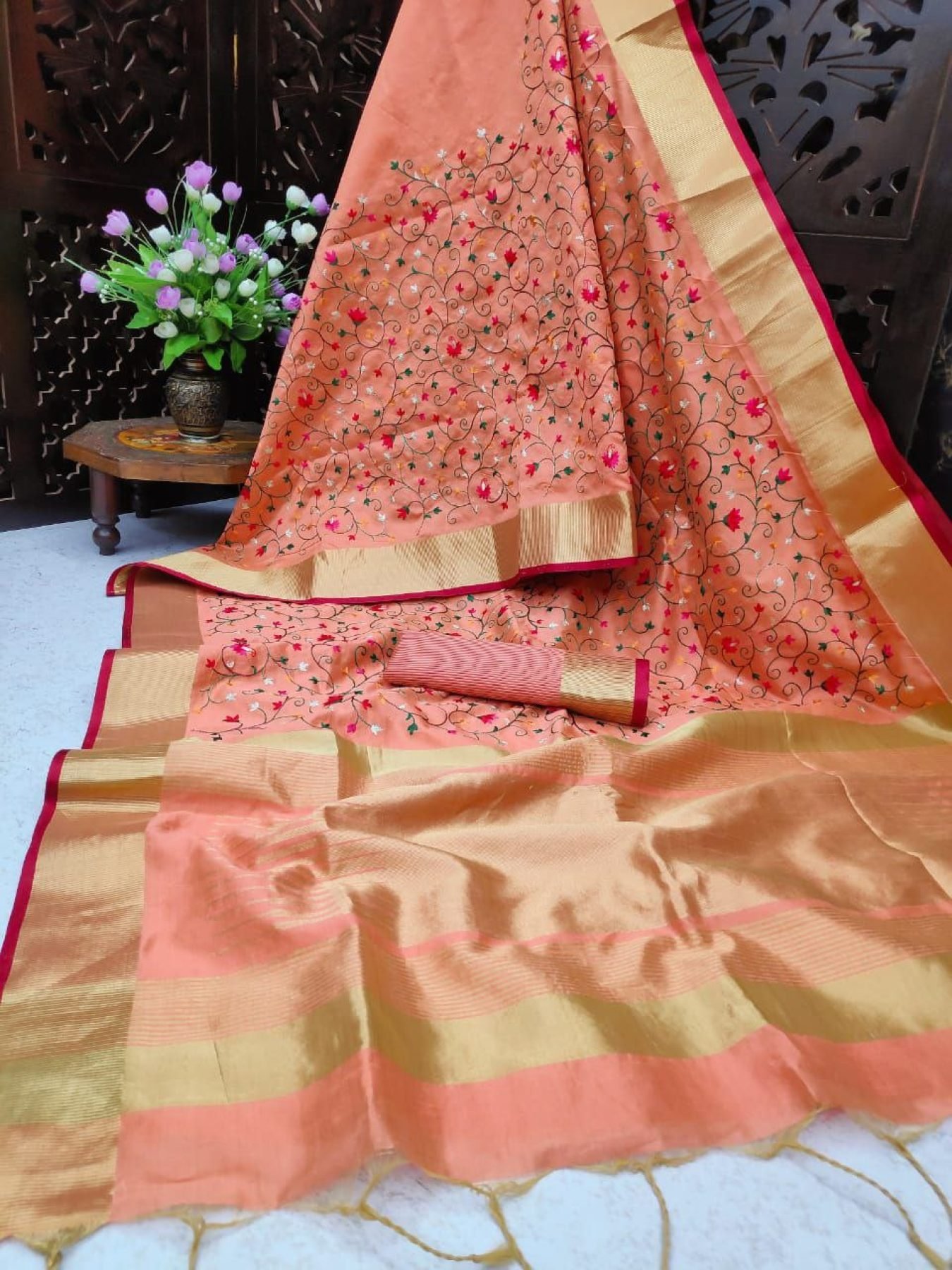 Asam Silk Saree With Beautiful Embroidered Jal Work