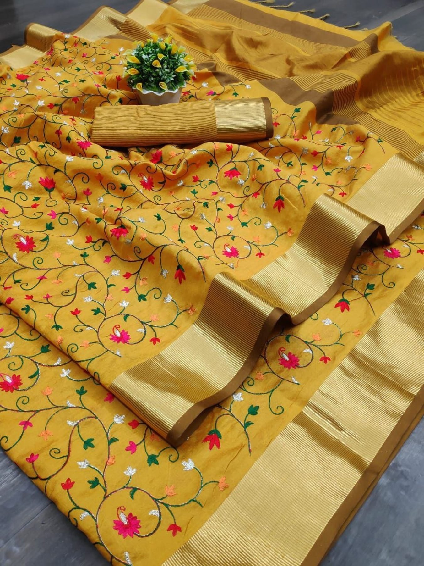 Asam Silk saree with beautiful *Embroidered jal work all over* with Unique Zari Woven border and *ikkat Woven Pallu