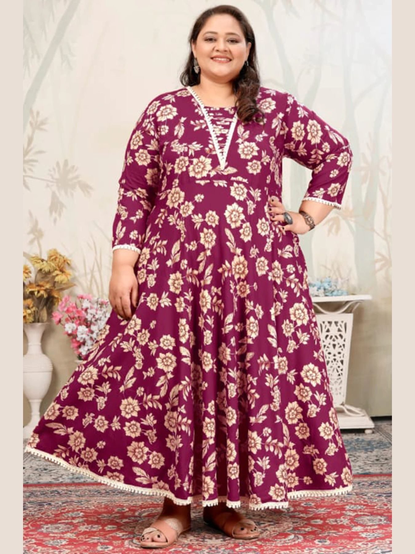 Authentic Wine Plus Size Rayon Long Kurti for Women Export Quality