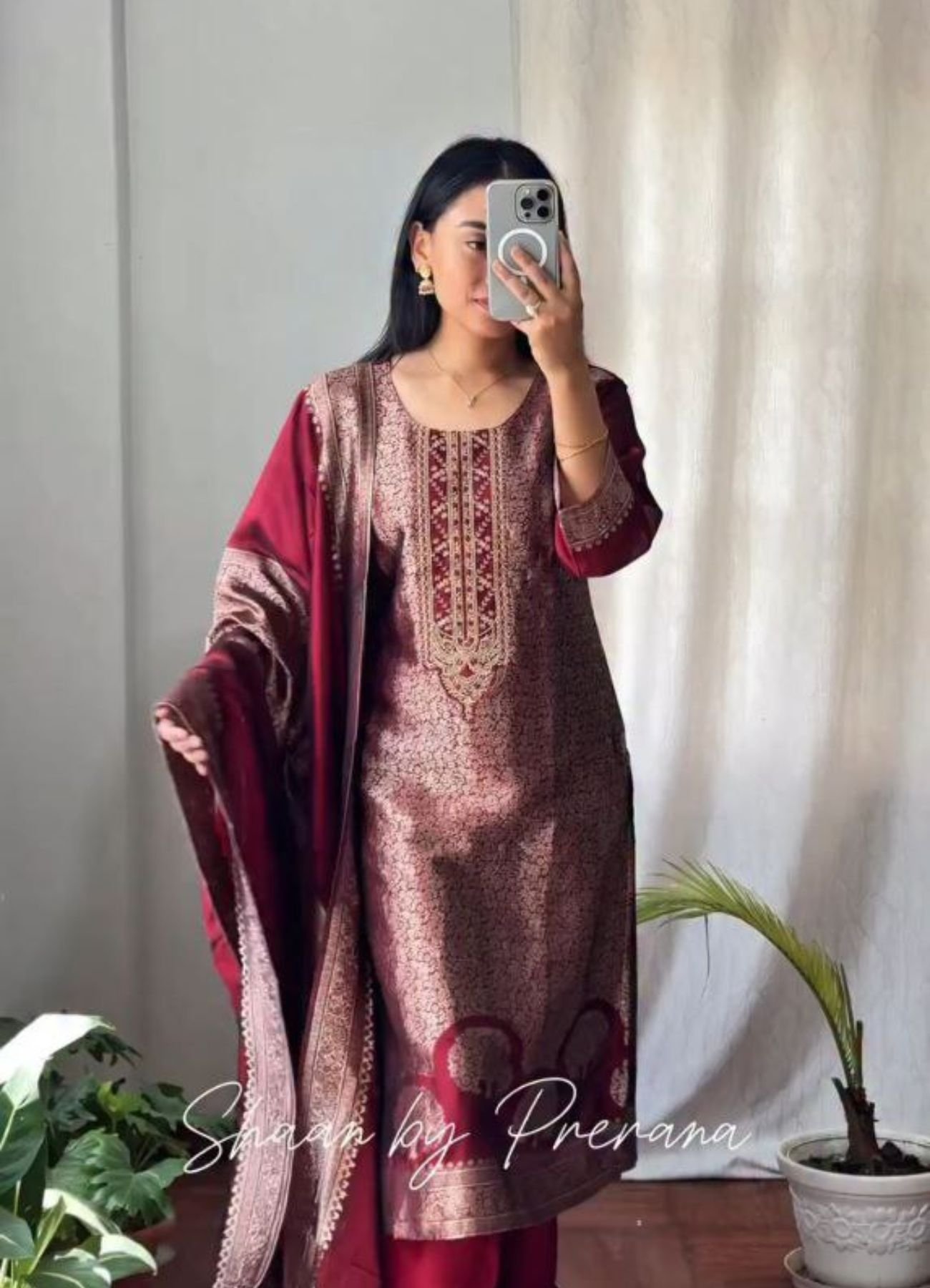Experience luxury ethnic wear with this pure banarasi kurti set featuring soft pure cotton lining for all-day comfort.