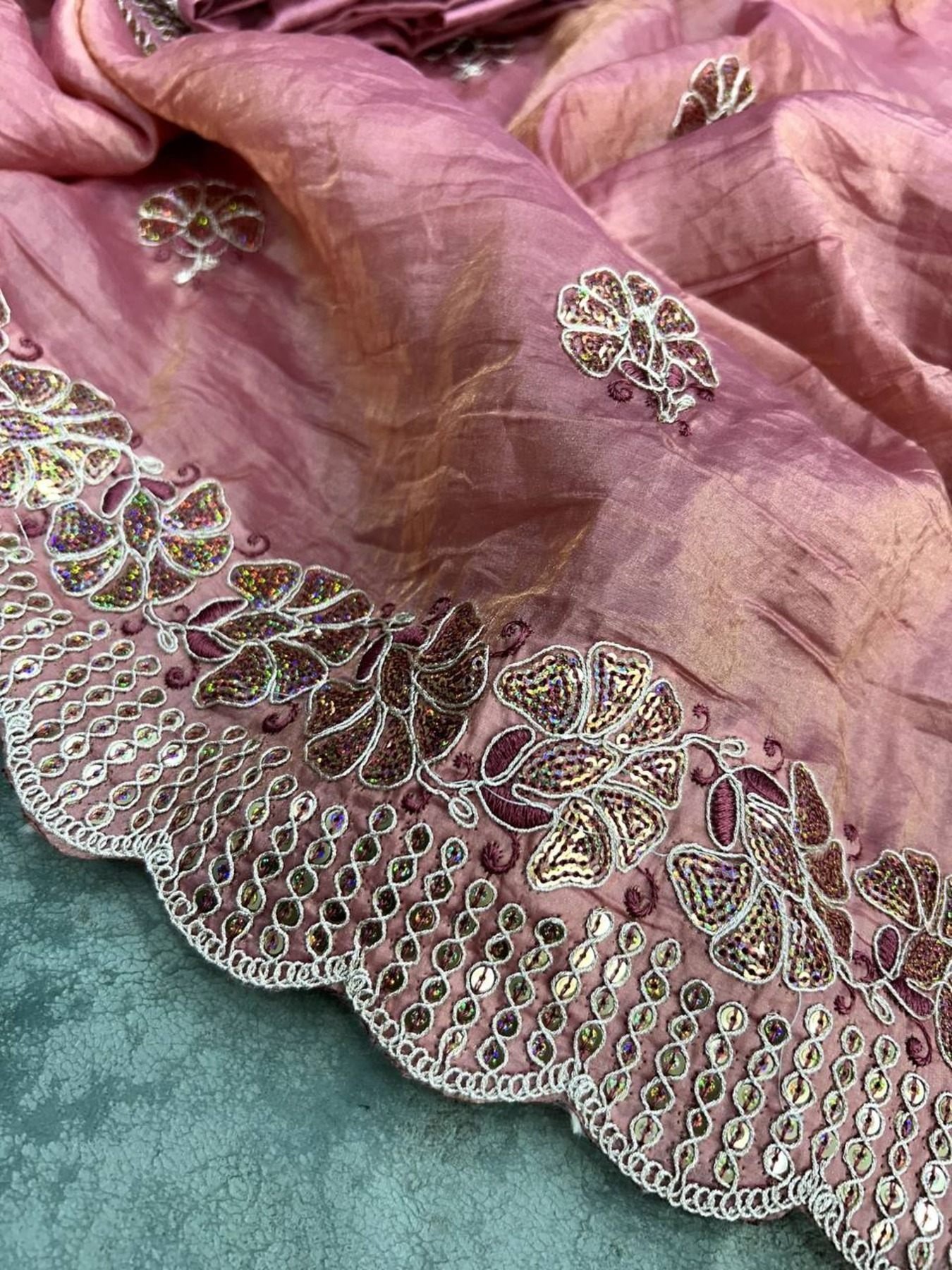 Work :- Beautiful Designer Sequence & Multi Thread Embroidery Work with Cutwork Border.