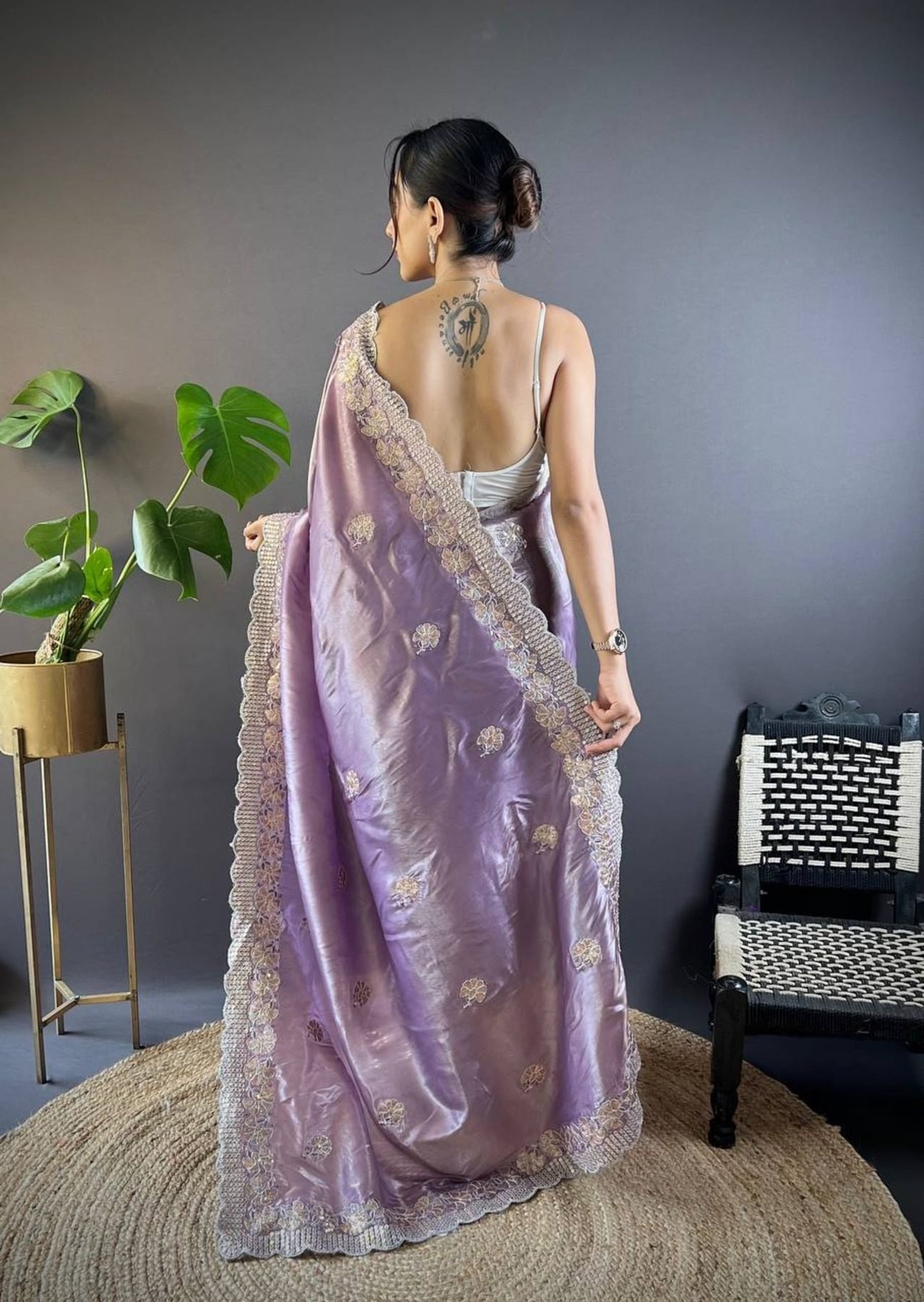 Beautiful Diamond Silk Saree With Multi Sequence And Thread Work