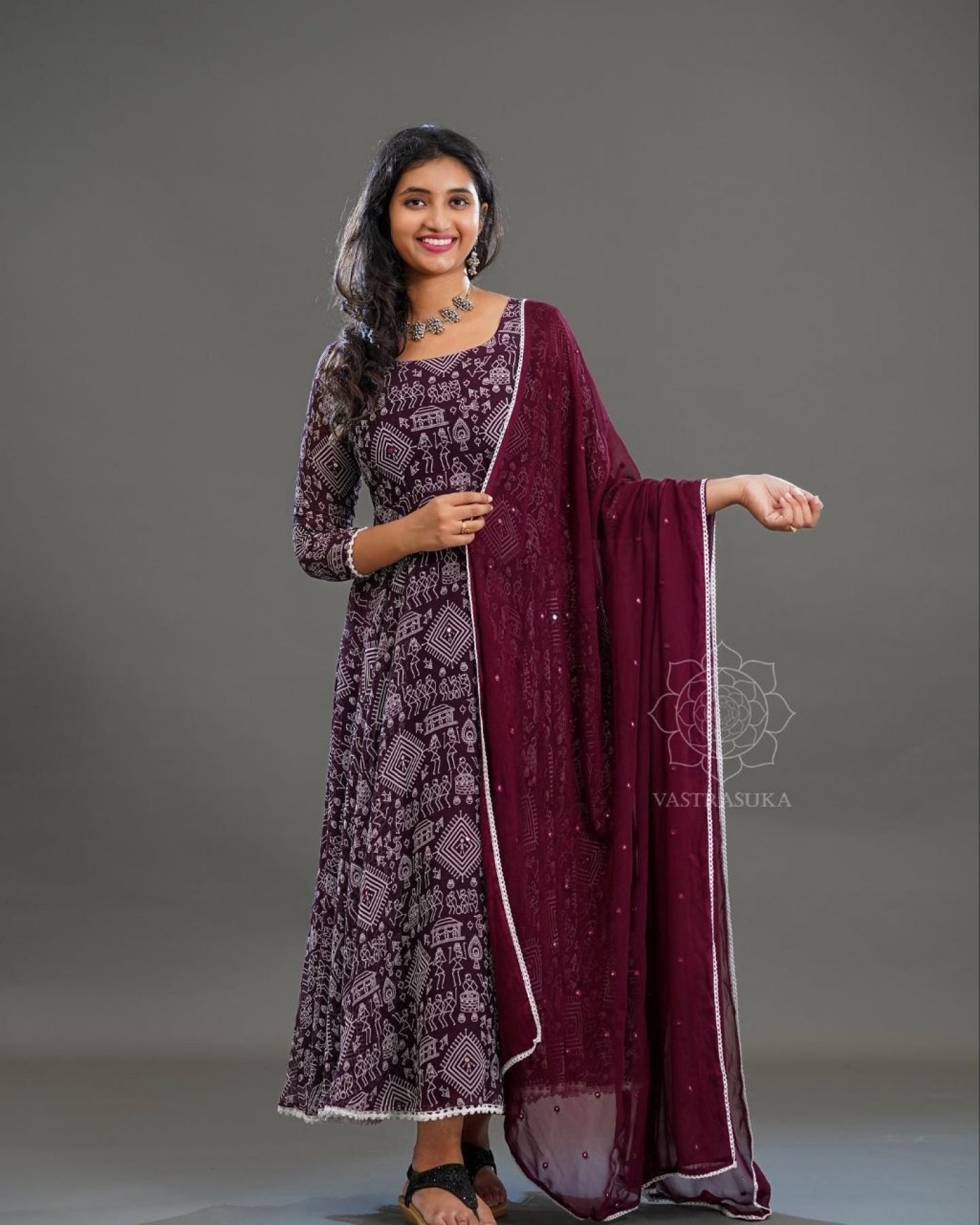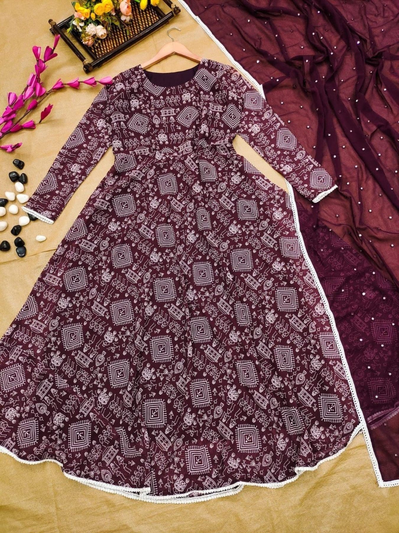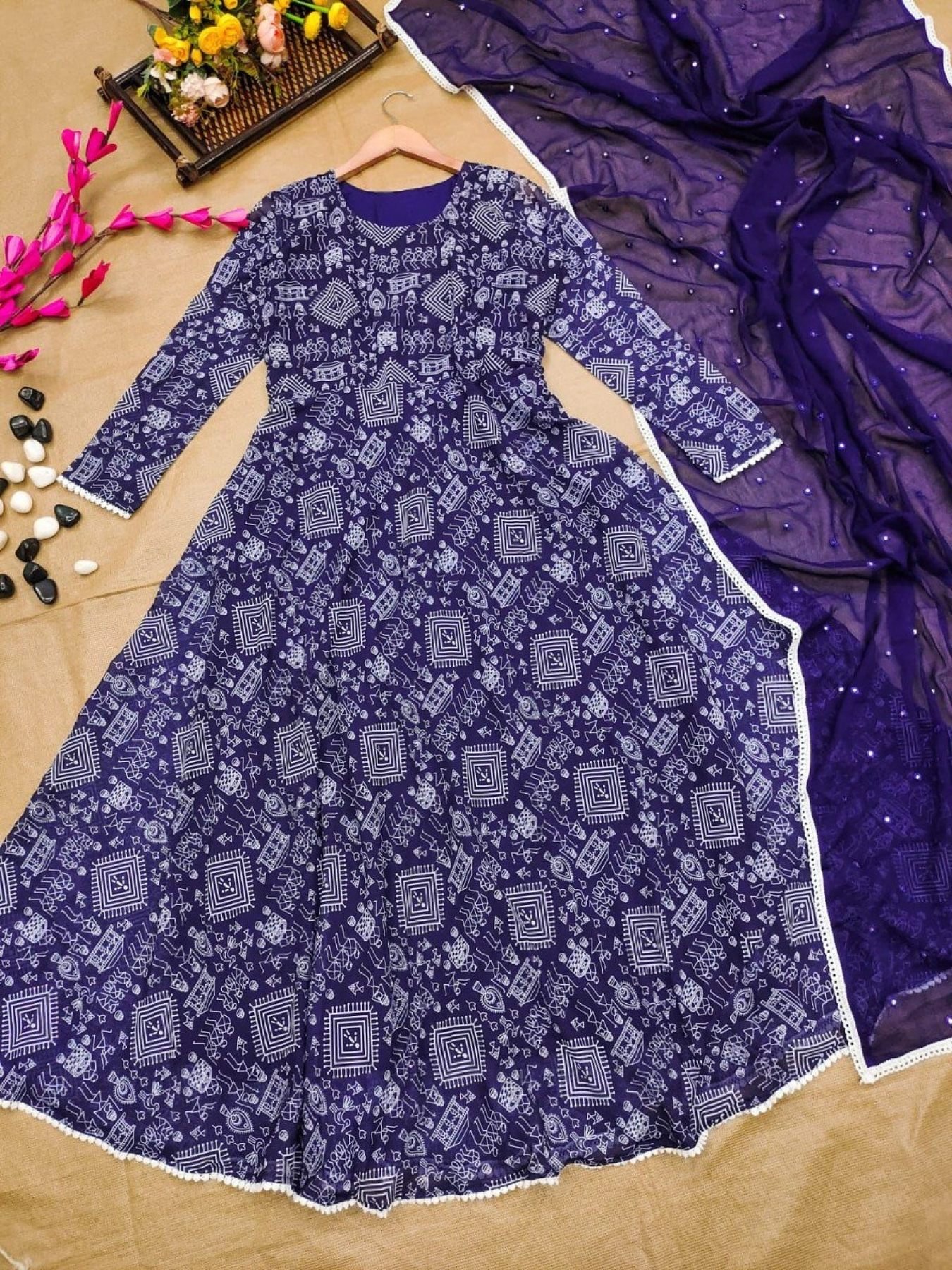 Beautiful Printed Gown paired with 9mm Sequence dupptta