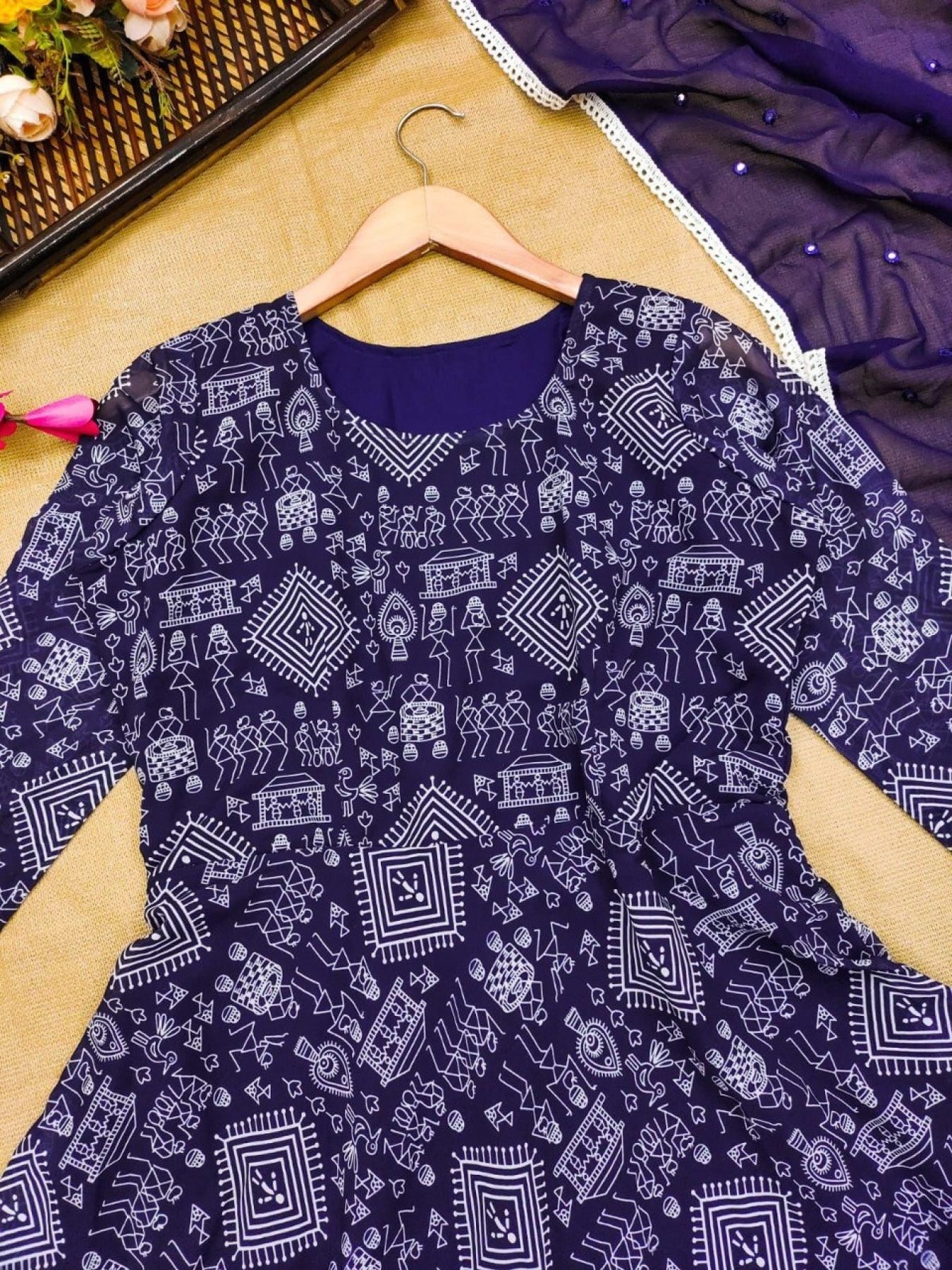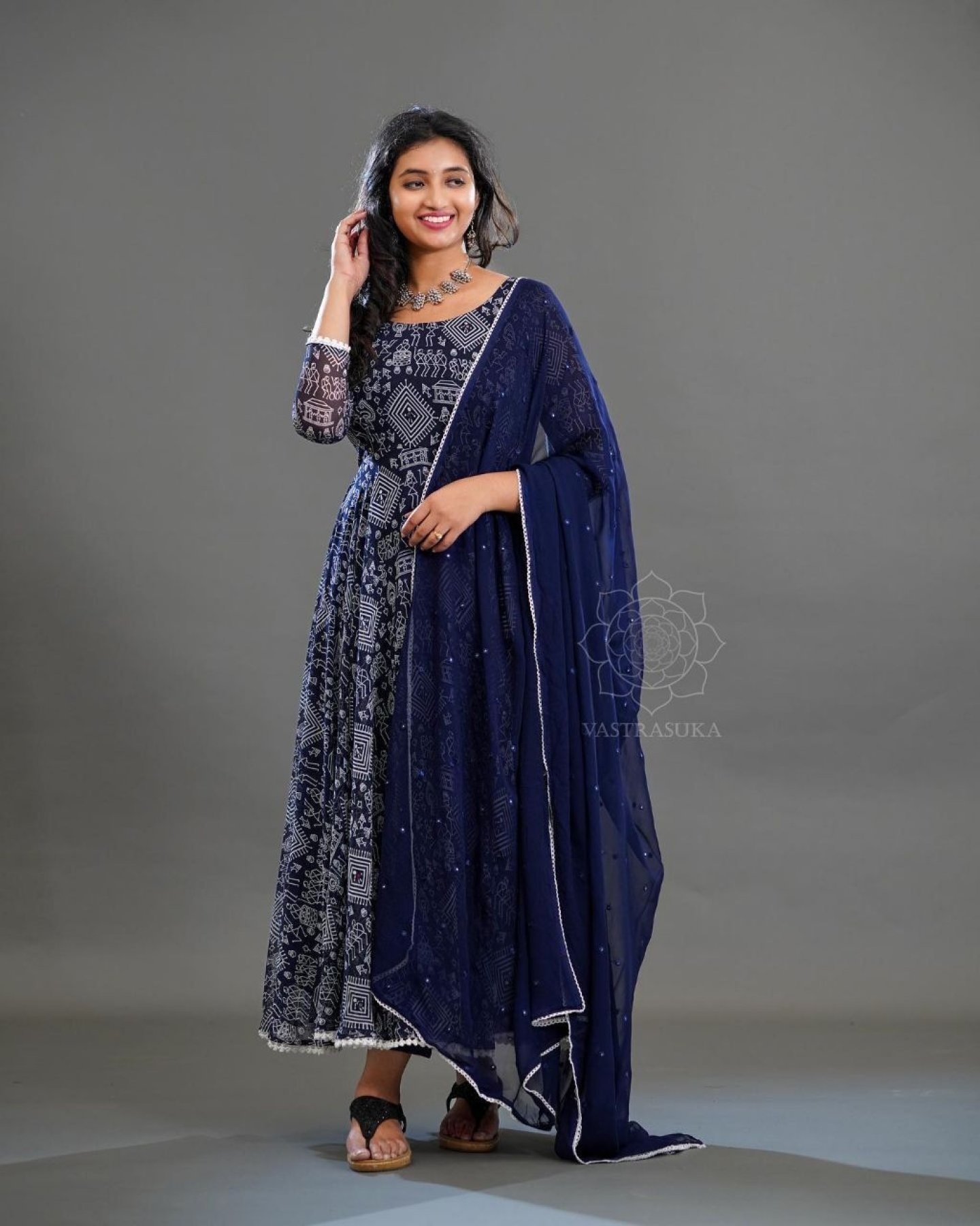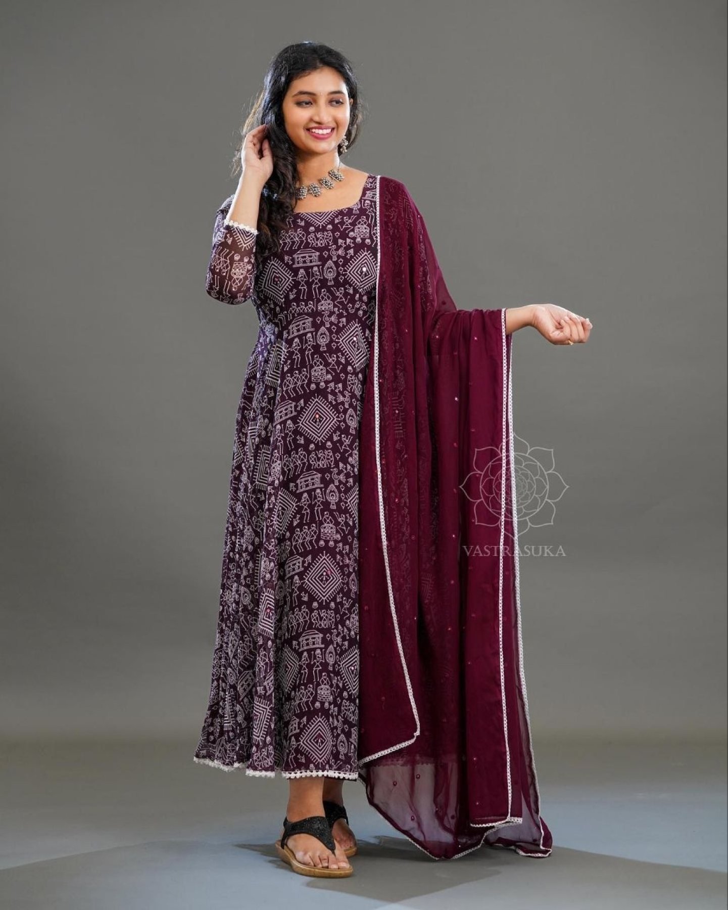 Beautiful Printed Gown paired with 9mm Sequence dupptta