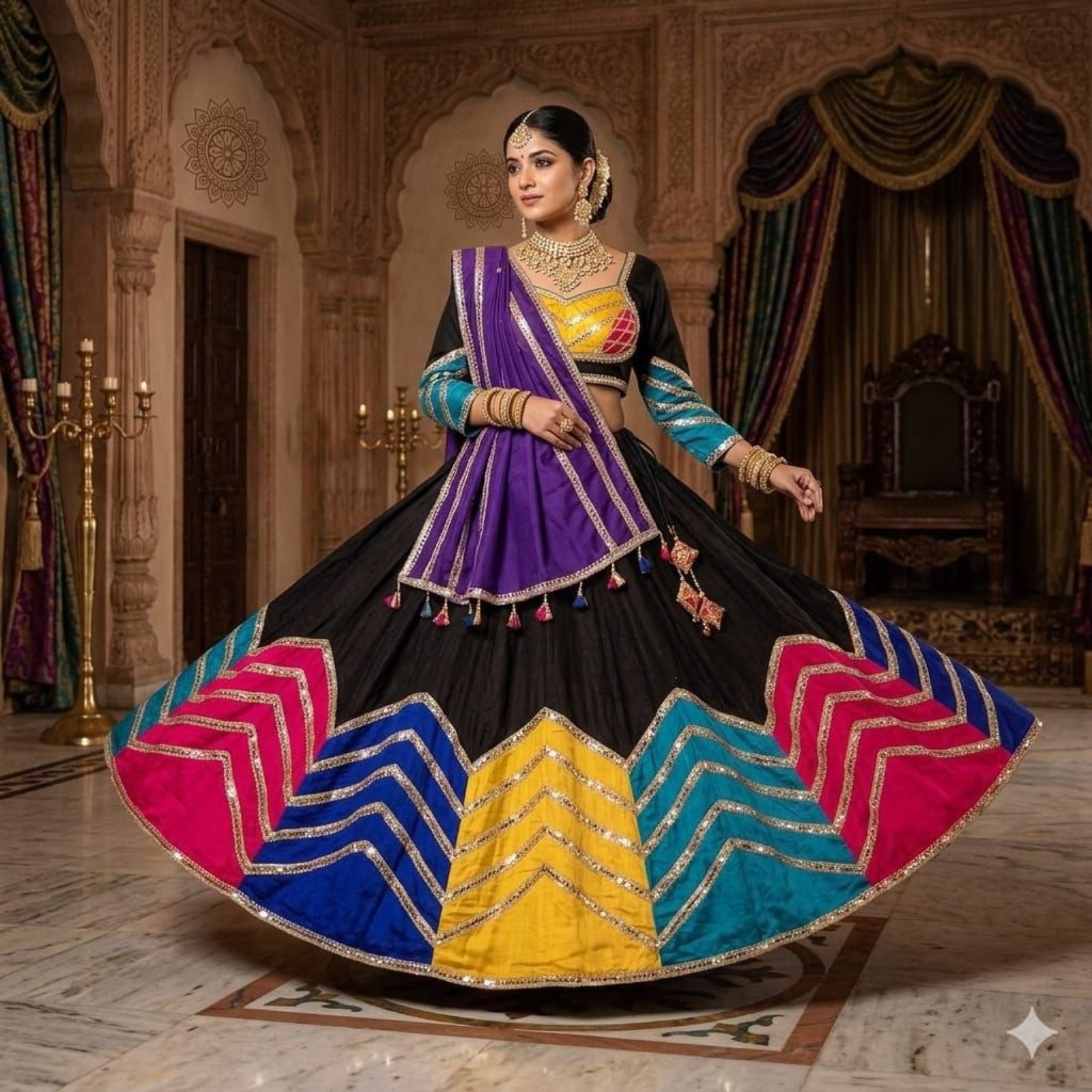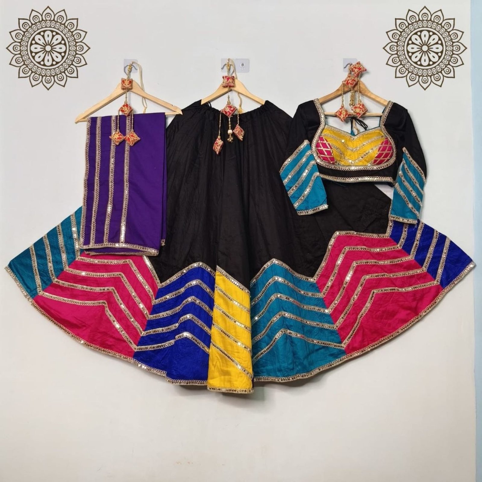 Black And Purple Dupatta Jam Cotton Lehenga Set with Designer Work for Festivals