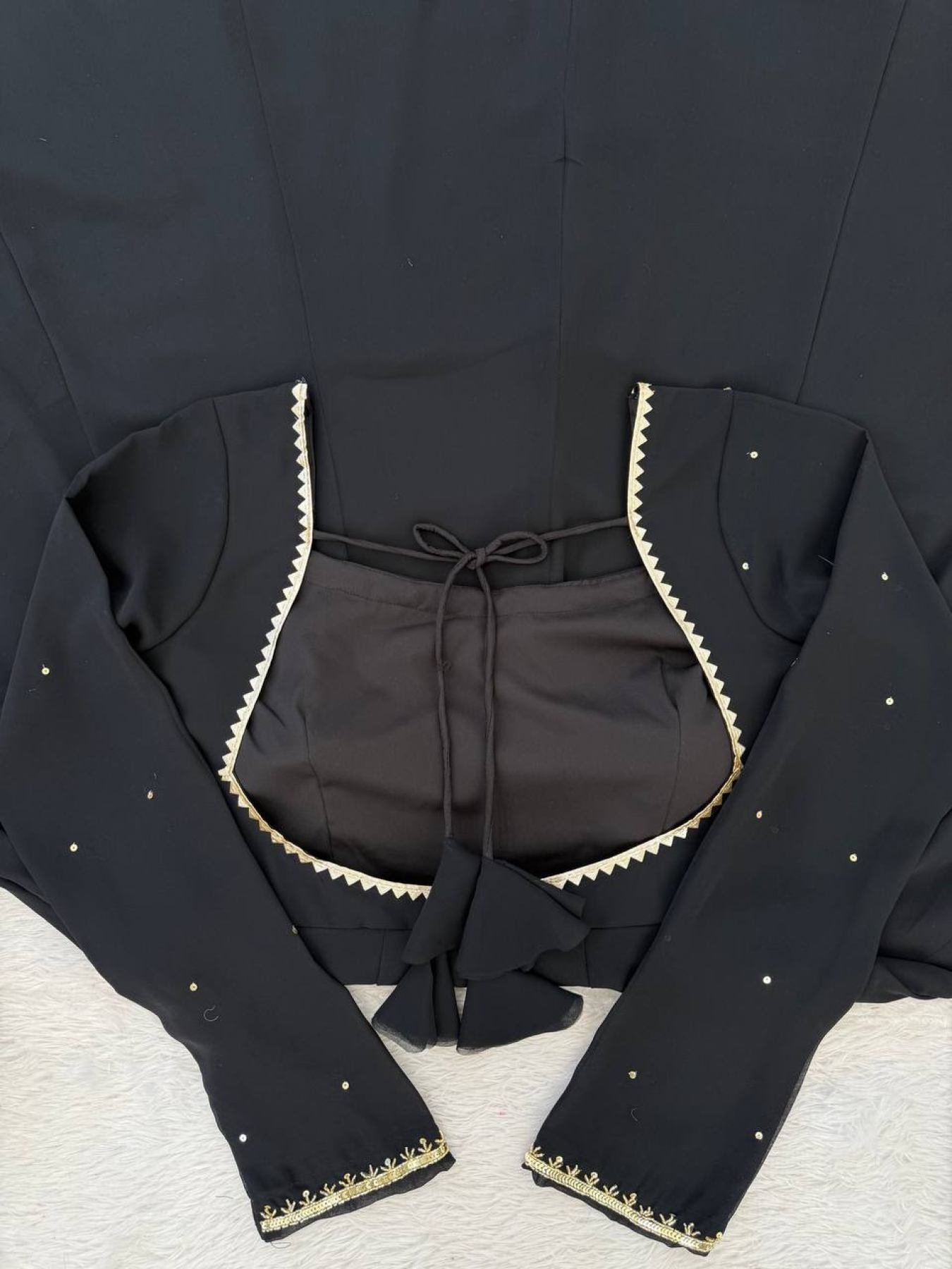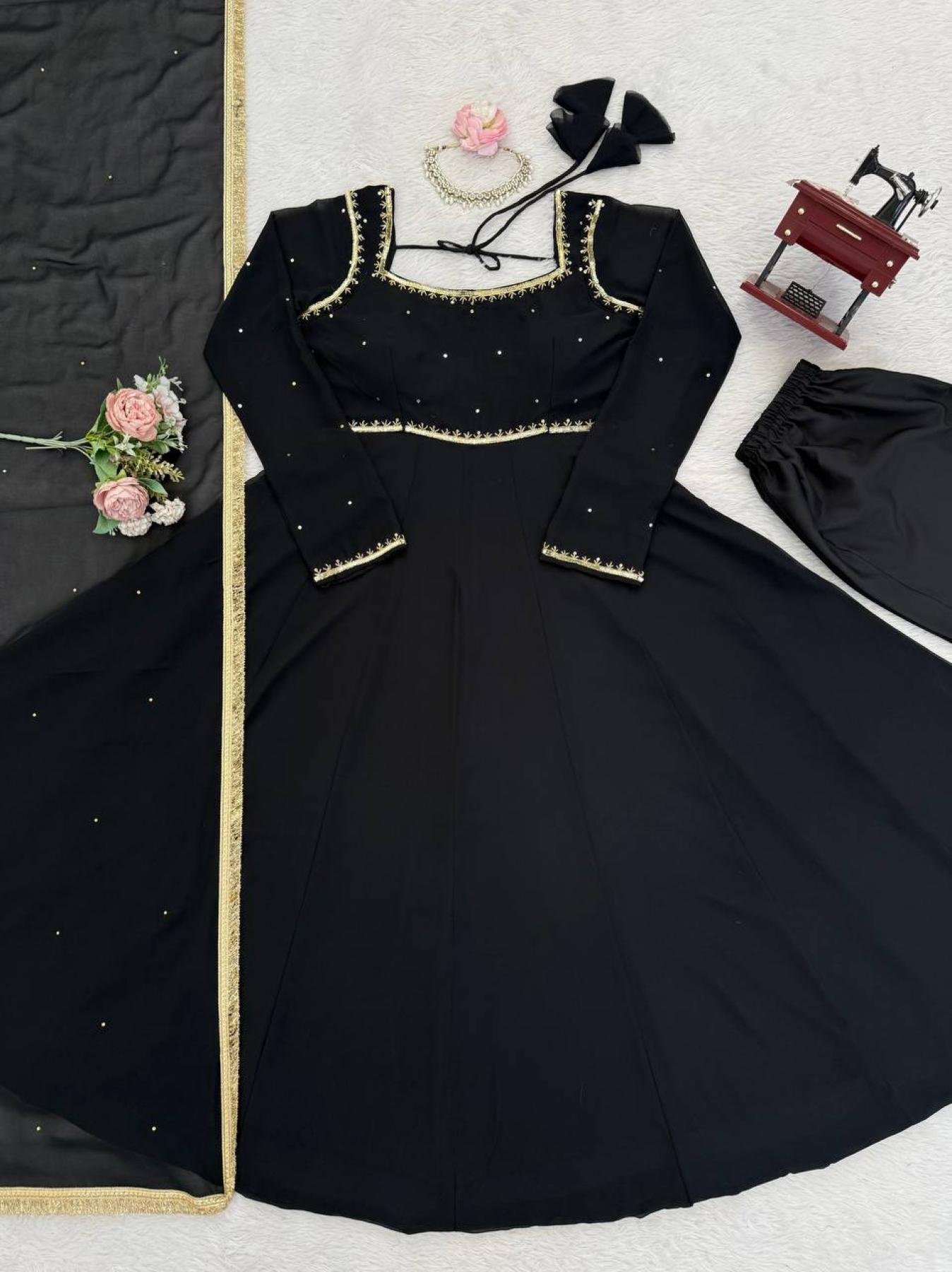 Black Faux Georgette Anarkali Suit Set with Handwork and 5-meter flair