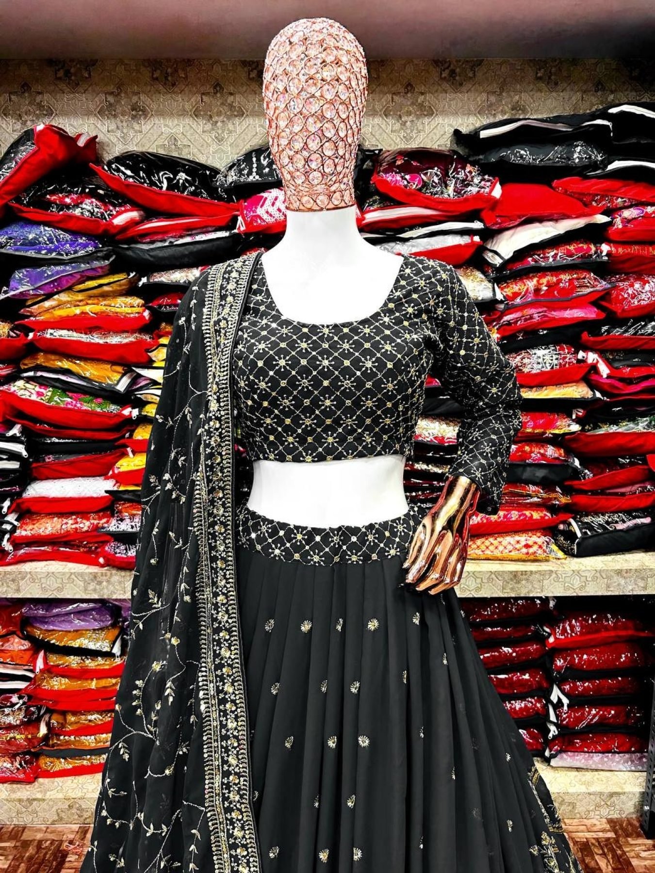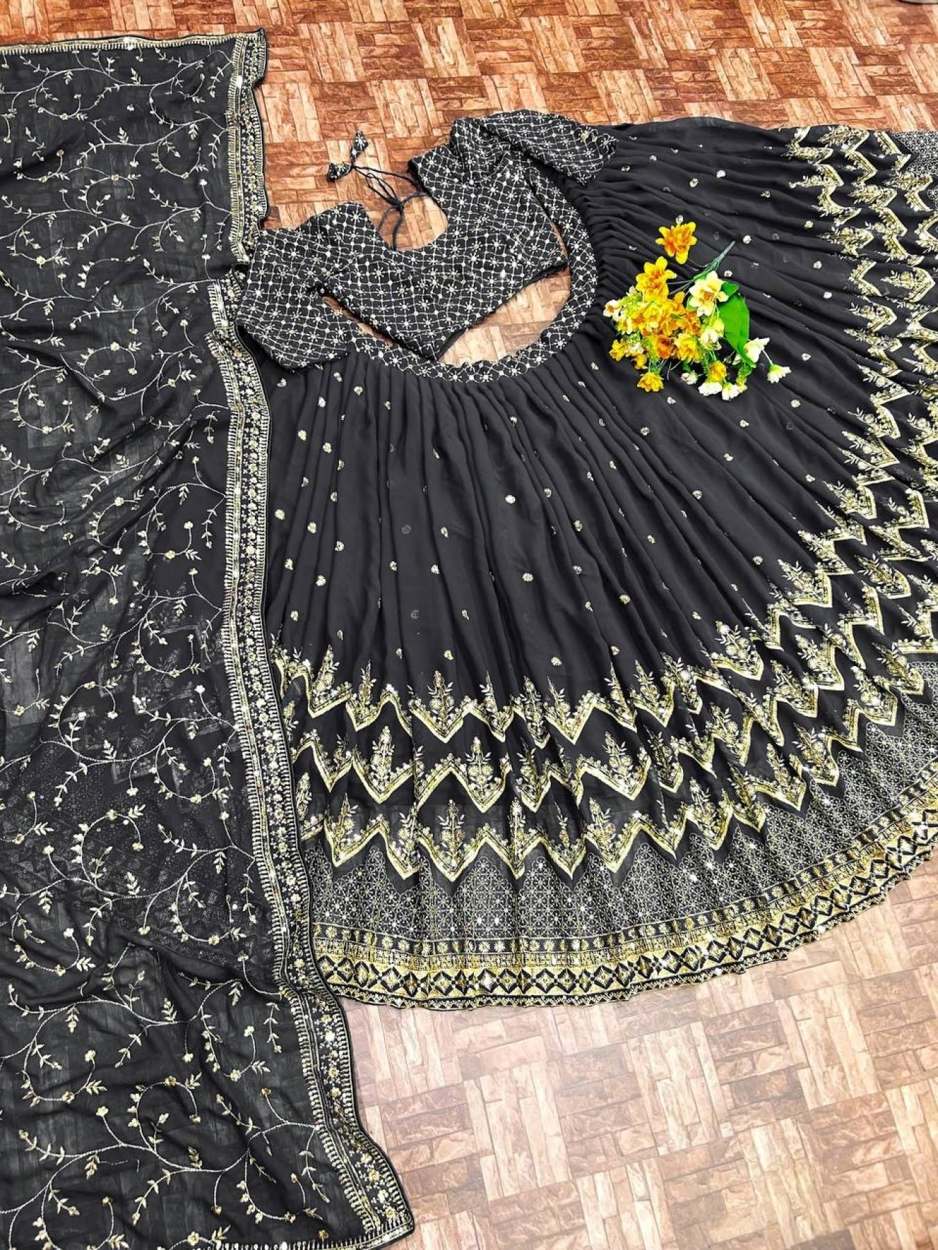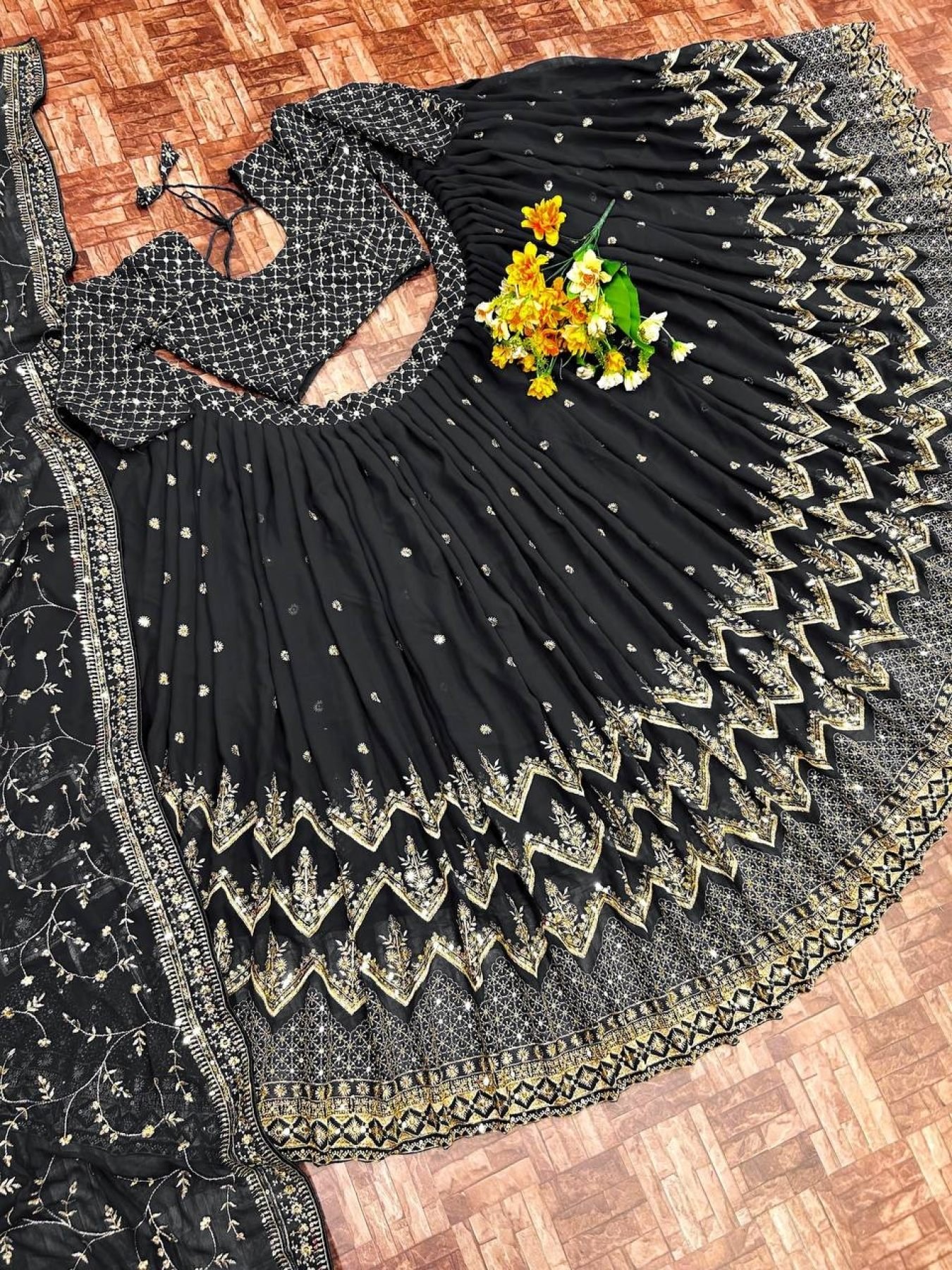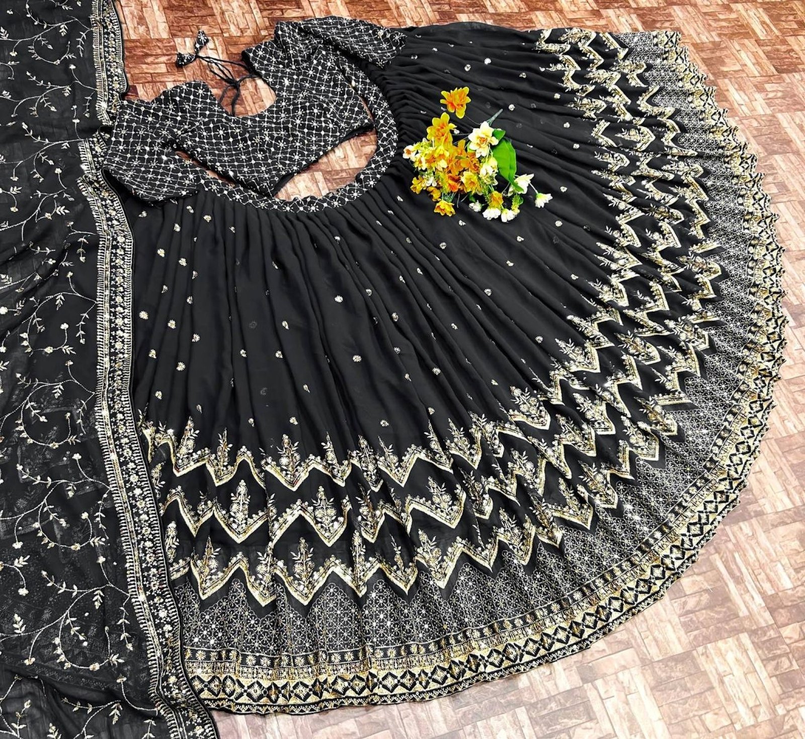 Black Faux Georgette Lehenga Choli With Zari Sequence Work