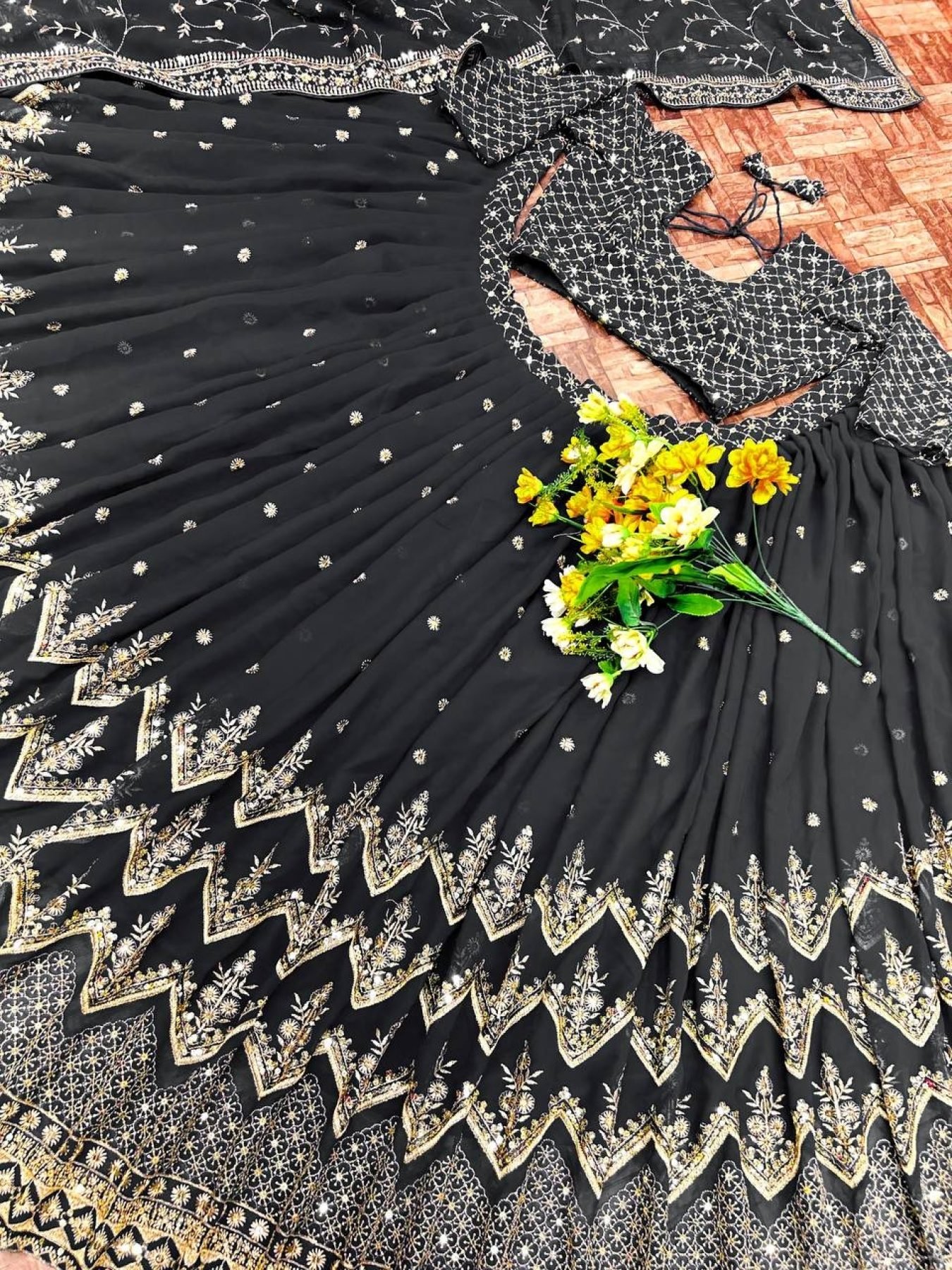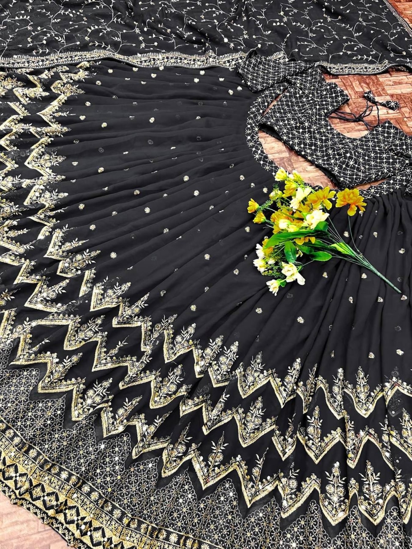 FABRIC :Faux Gorgette Silk With Heavy Embroidery 5mm Sequence Zari work Coming With Unstiched