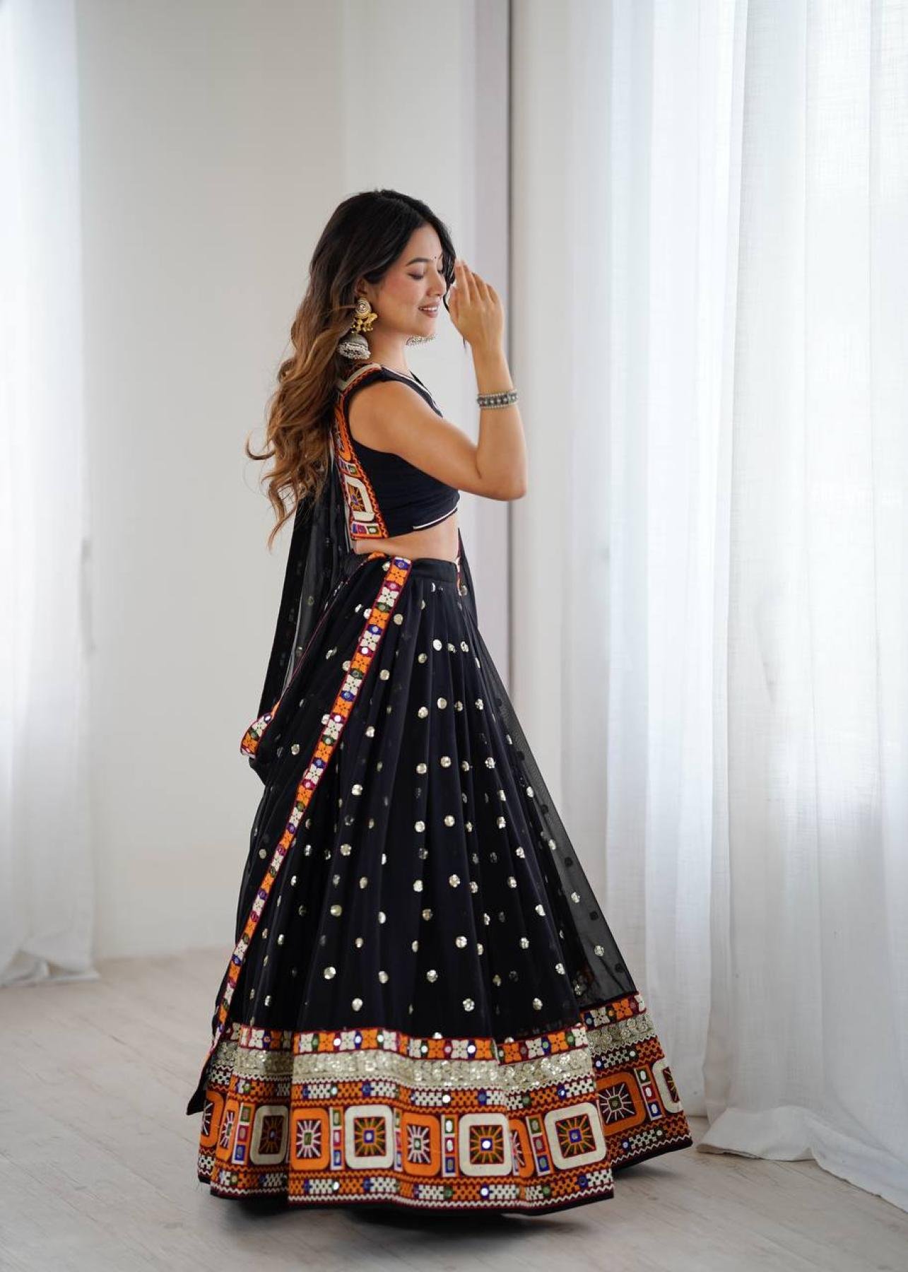 Black Faux Georgette Navratri Chaniya Choli with Mirror Sequence Work At Best Rates