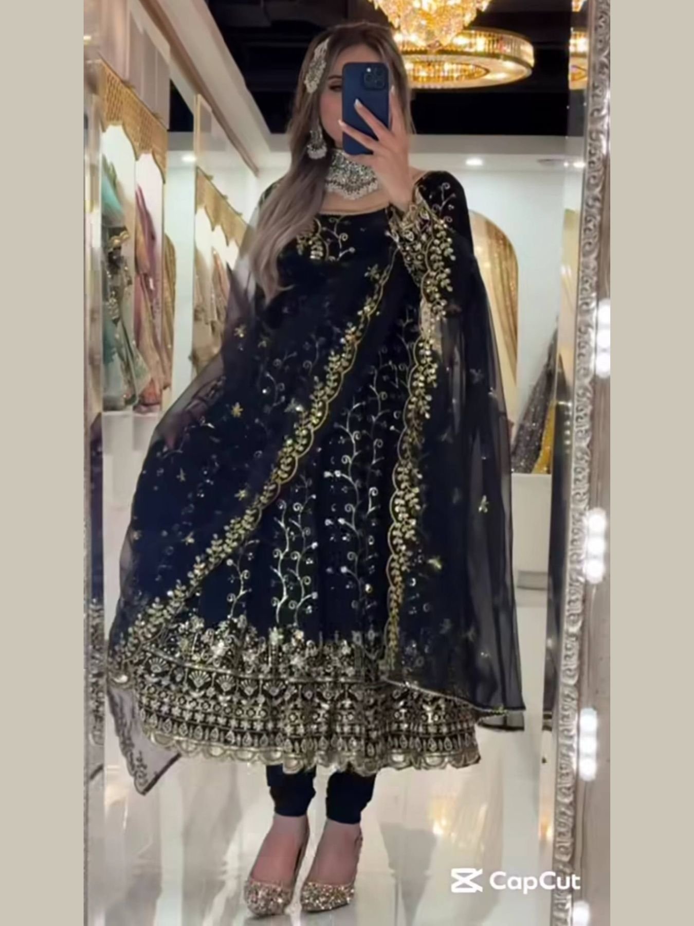 Size ChartThis newly launched Designer Anarkali Suit is crafted in luxurious Heavy Faux Blooming Georgette, adorned with 5mm sequins and delicate embroidery for a premium festive appeal. The Anarkali flaunts an impressive 3.5-meter flair with a smooth micro cotton inner, offering both elegance and comfort. Fully stitched with margin up to XXL and included cups, it ensures a perfect ready-to-wear fit. Complemented with a beautifully embroidered Georgette dupatta and matching chudi pant, this set is ideal for weddings, receptions, parties, festivals, and premium wholesale collections for resellers and export buyers.