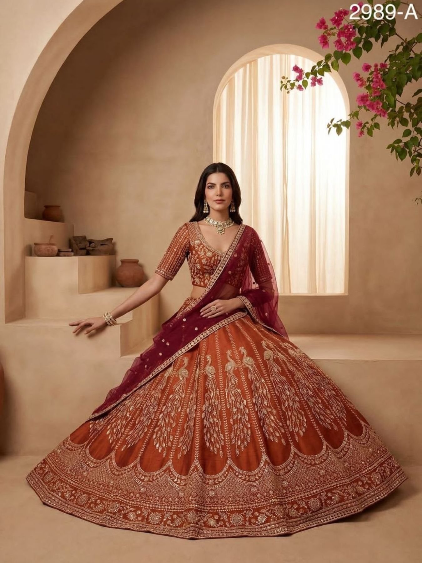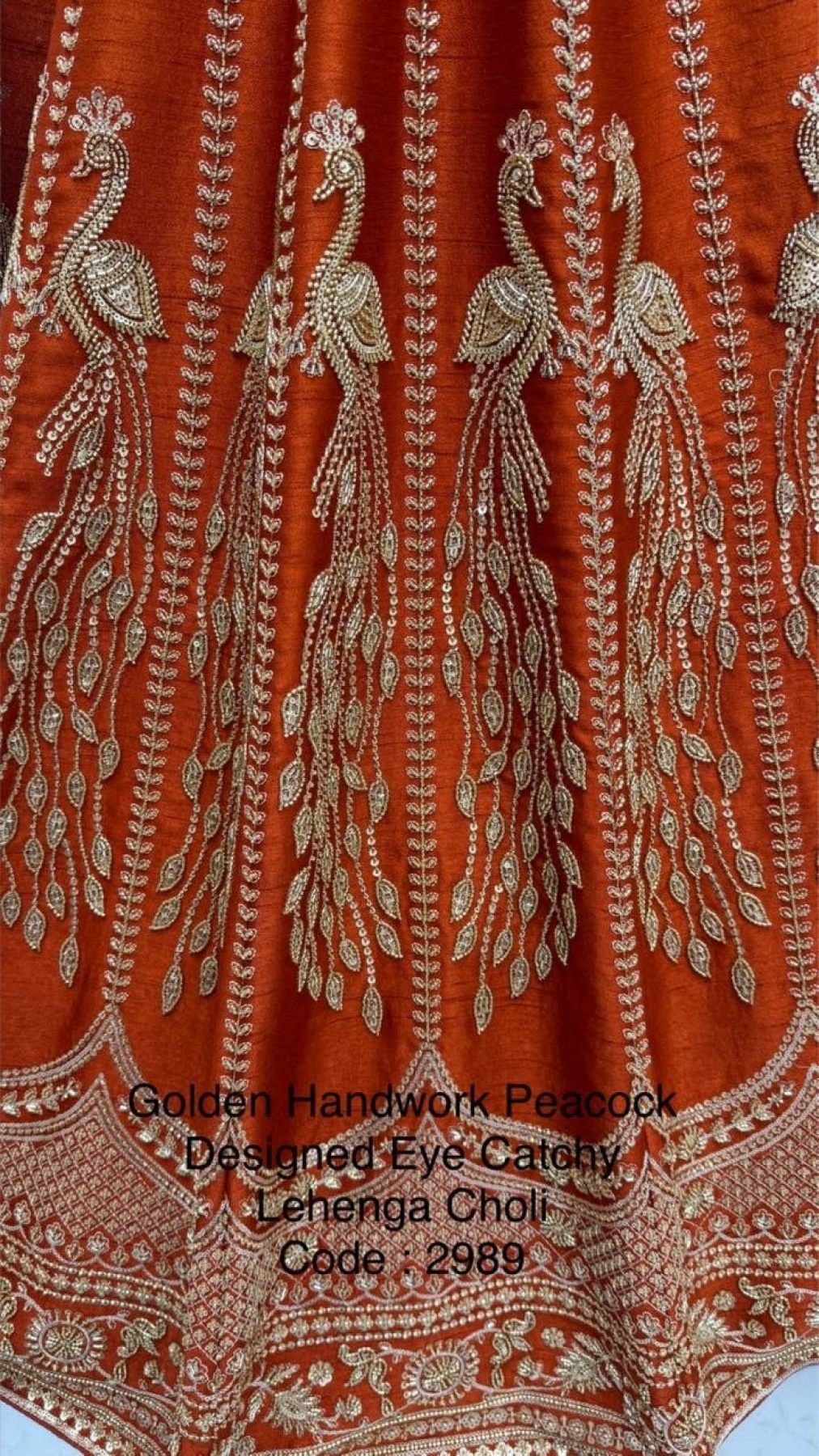 Luxury bridal lehenga crafted in premium silk featuring intricate handwork motifs, crystal detailing, zari, multi-thread embroidery, dori, and sequins work. Designed with a grand 4+ meter flair and heavy cancan, this outfit offers a rich royal look, perfect for weddings, bridal wear, and grand occasions.