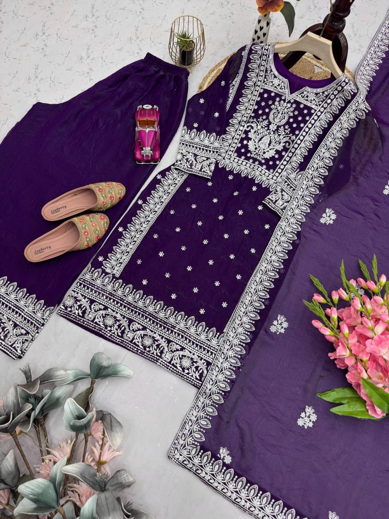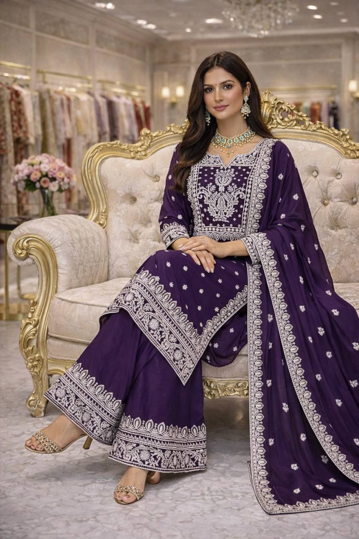 Size ChartStep into a trendy and viral ethnic look with this elegant heavy fandy silk set featuring detailed cotton thread embroidery with sequins work for a rich designer finish. Designed with a stylish fully stitched top and comfortable plazo, paired with a matching embroidered dupatta, this outfit offers a perfect blend of elegance and modern ethnic style for festive wear, parties, and boutique collections.