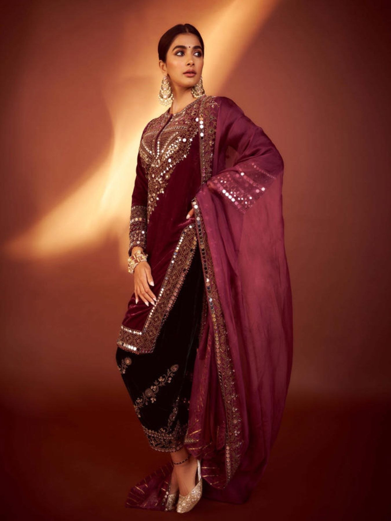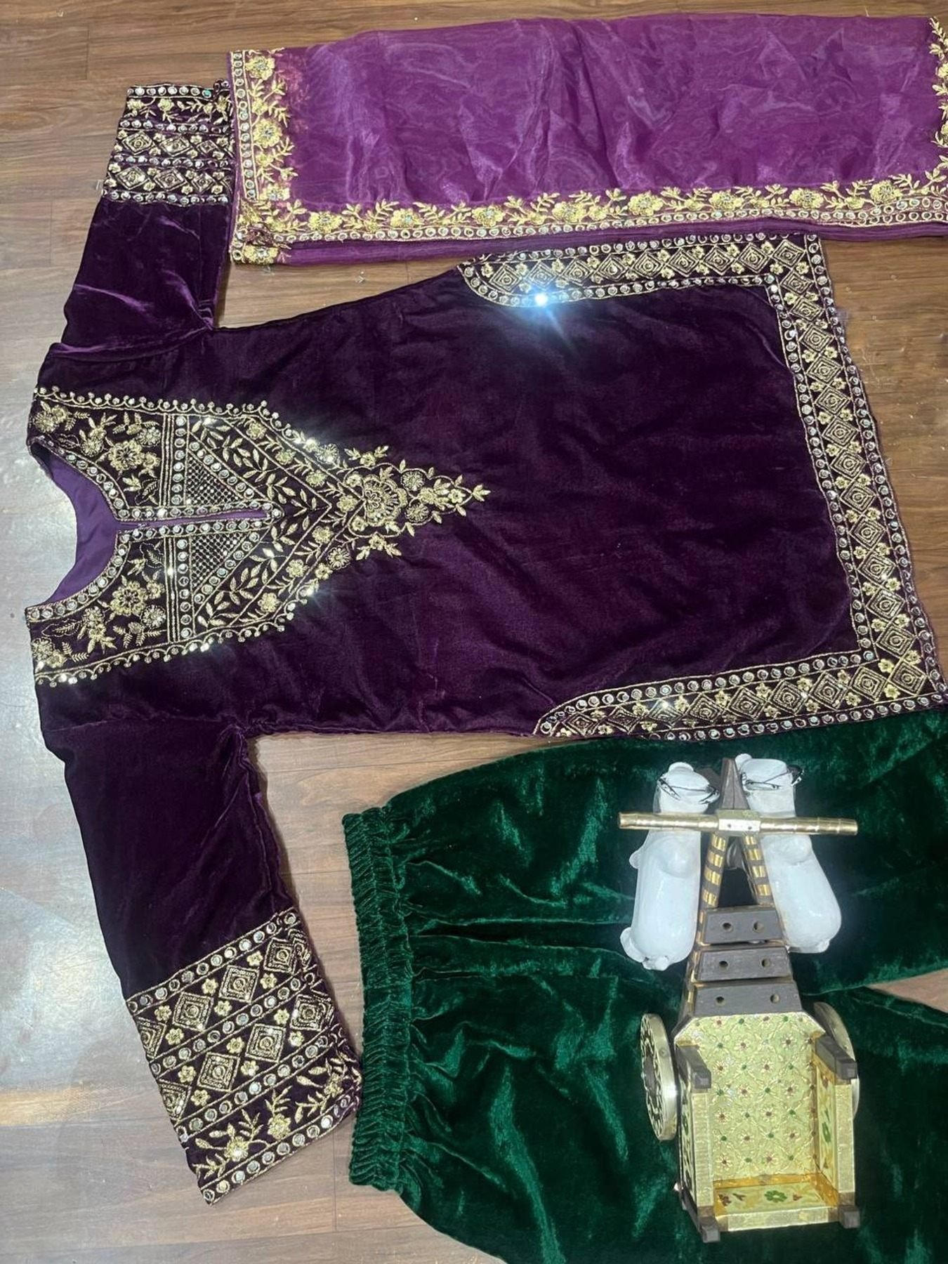 Bollywood Style Designer Velvet Dress with Embroidery Sequence work