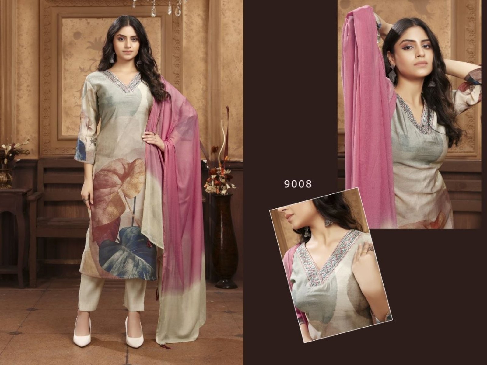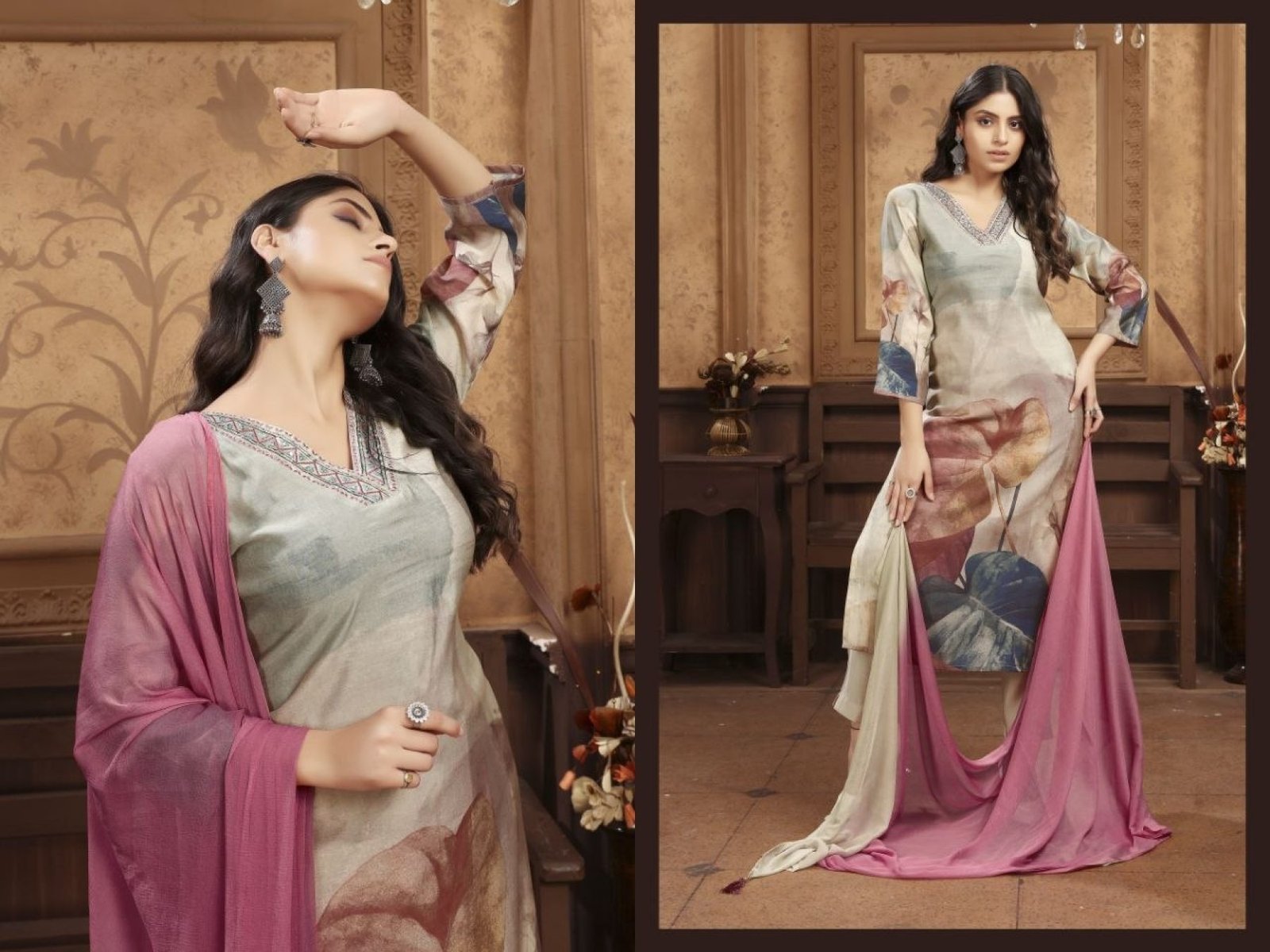 Boutique Cream and pink Dupatta Style Chanderi Set for Casual Wear