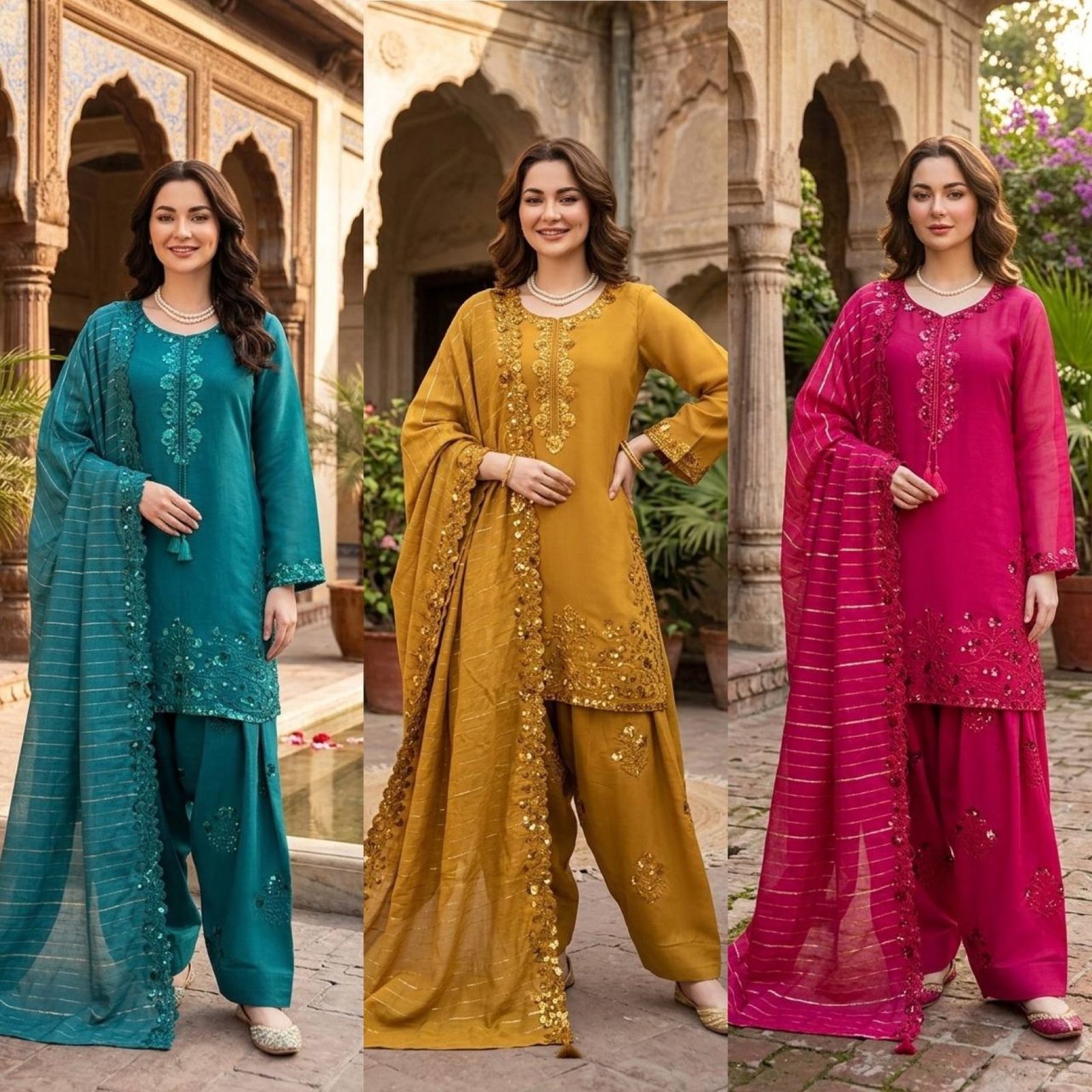 Elegant designer farshi plazo set crafted in mul chanderi fabric featuring intricate thread and sequence work. Paired with a stylish dupatta, this outfit is perfect for festive wear, weddings, and special occasions.