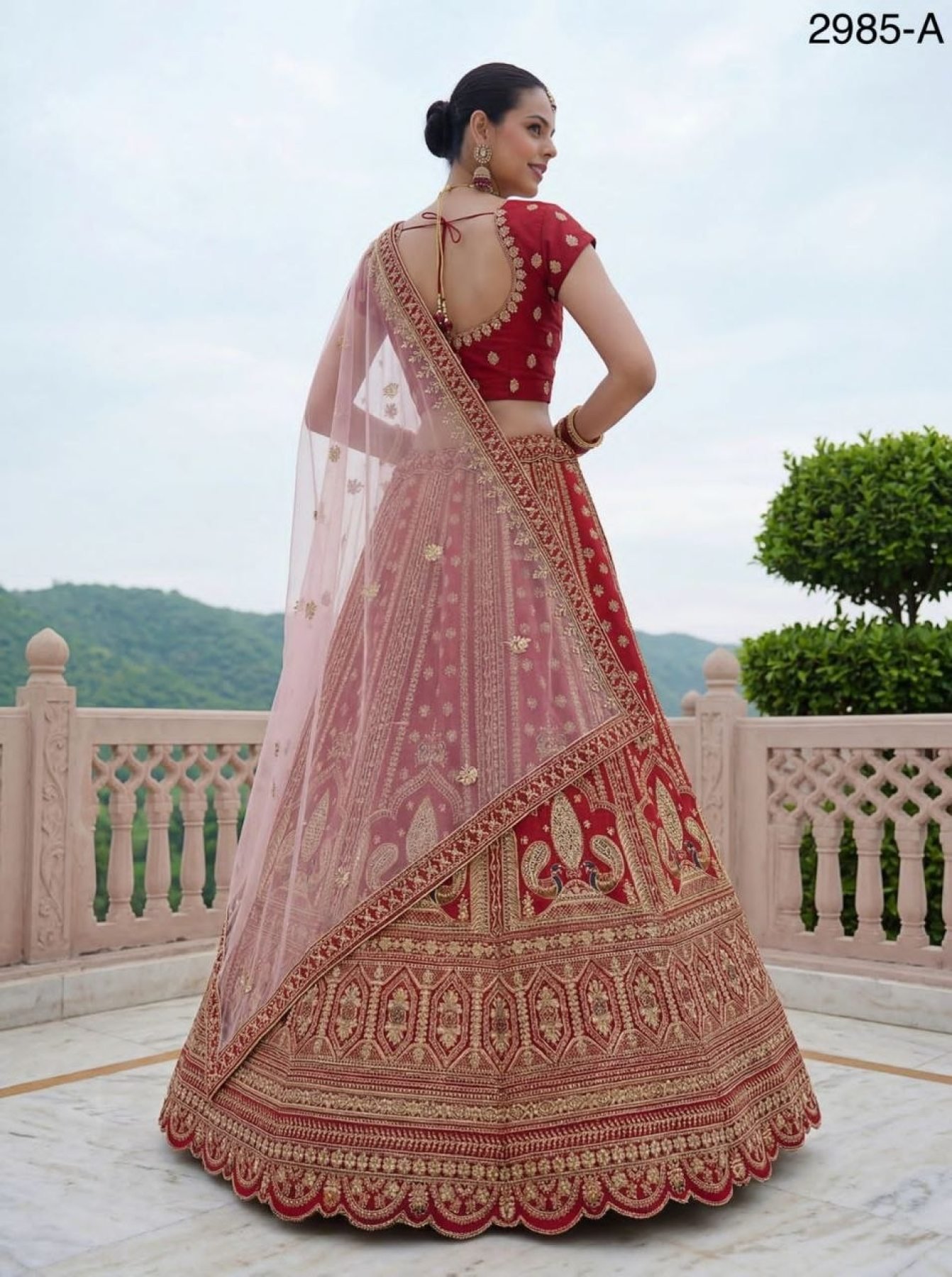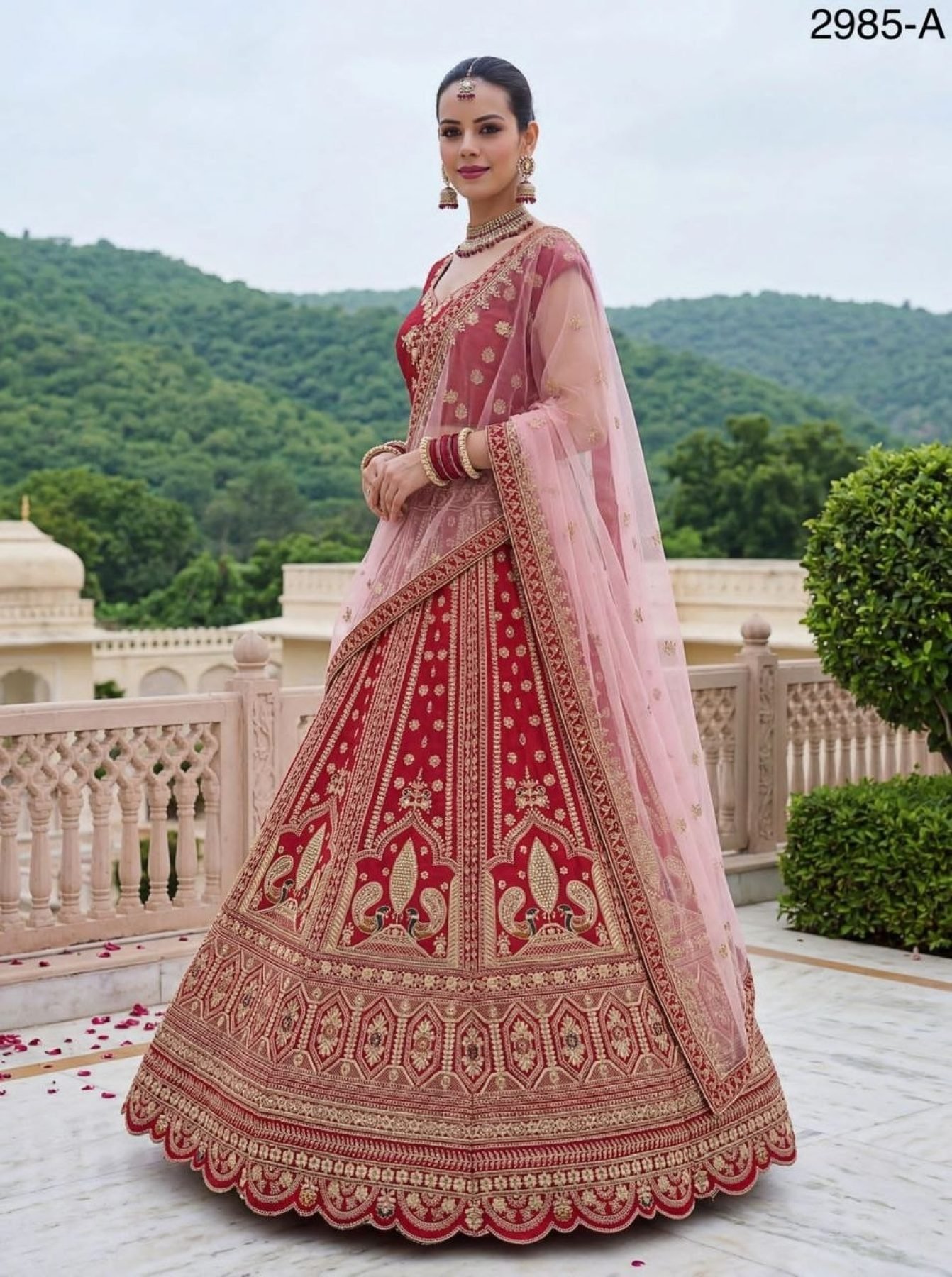 Bridal Red Silk Lehenga Choli with Peacock Embroidery for Wedding Wear