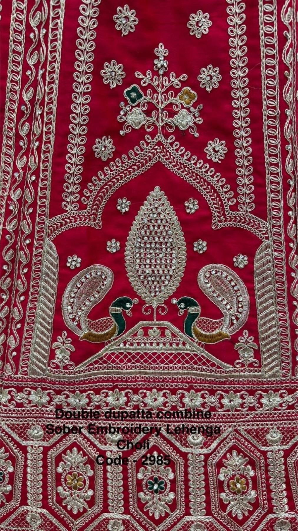 Luxury silk lehenga choli featuring intricate peacock design with dori, zari, and diamond embroidery. Paired with heavy blouse and elegant net dupatta, perfect for bridal, wedding, and grand occasions.