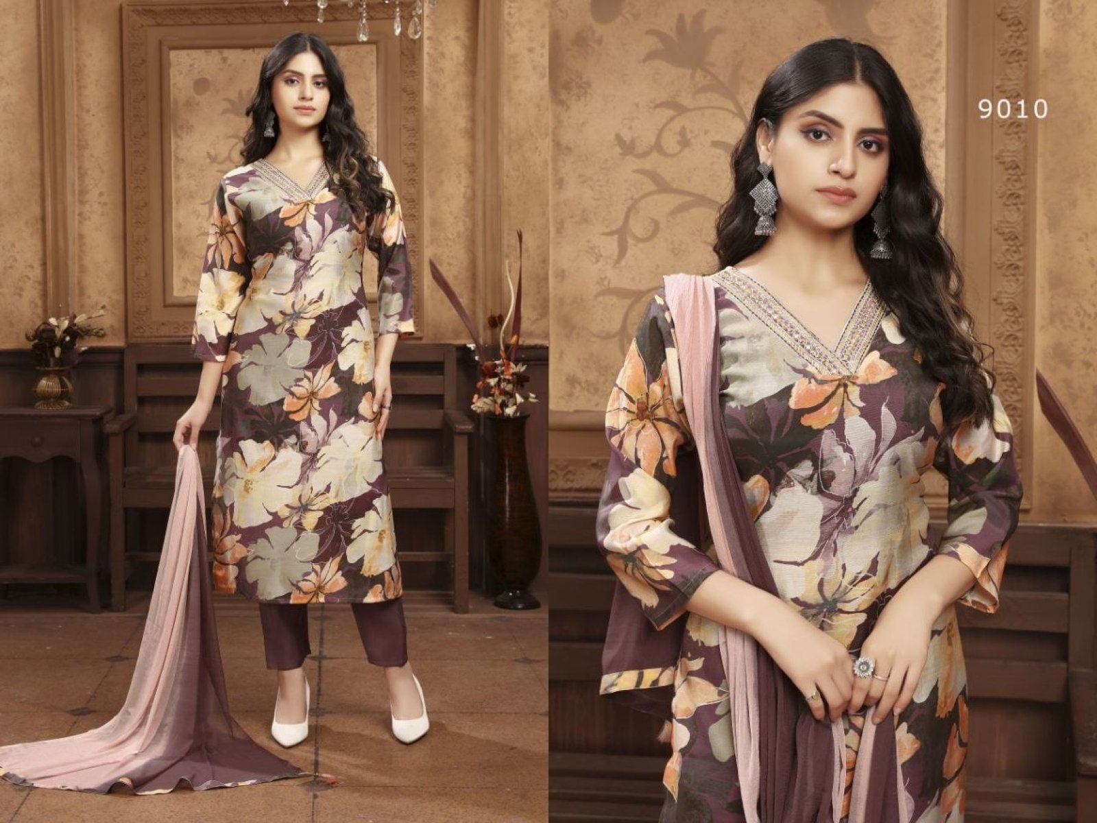 Brown Designer Top Pant Dupatta Set for Women Office Wear