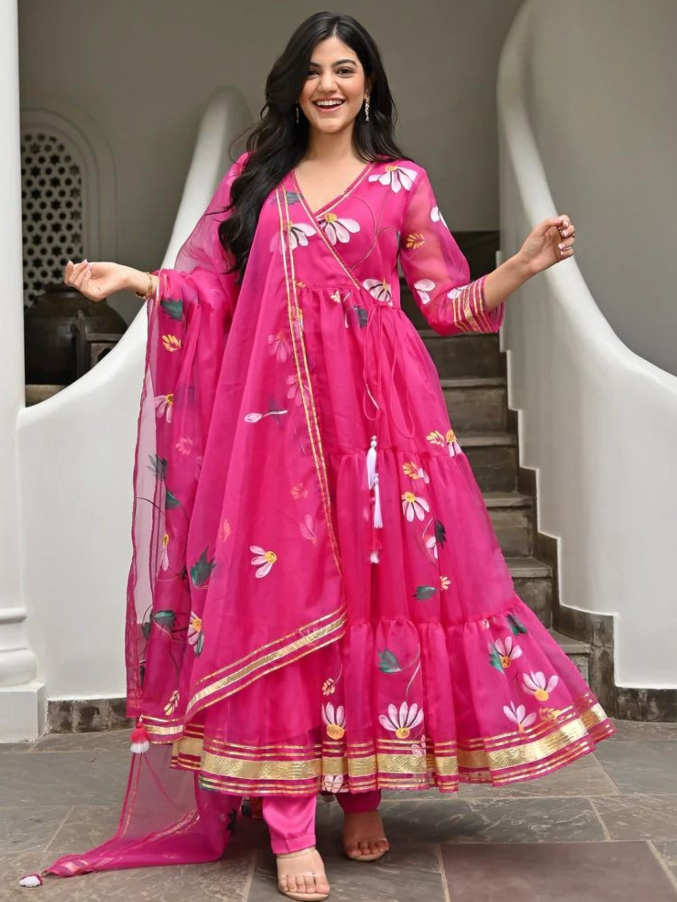 Buy Tabby Organza Anarkali Kurti With Dupatta