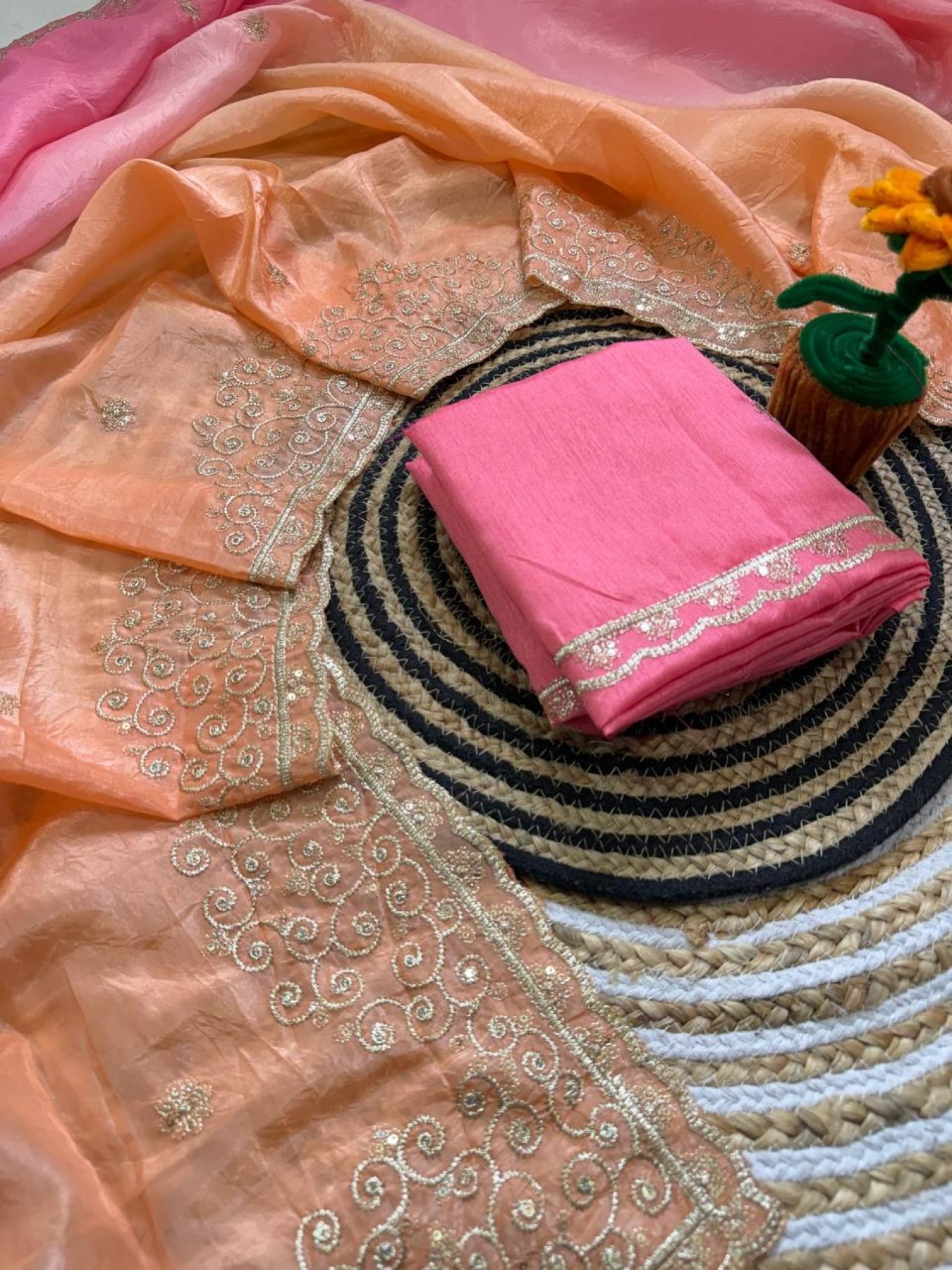 Work: 3MM Sequins with Gold Zari Thread Work and Cut Work Border