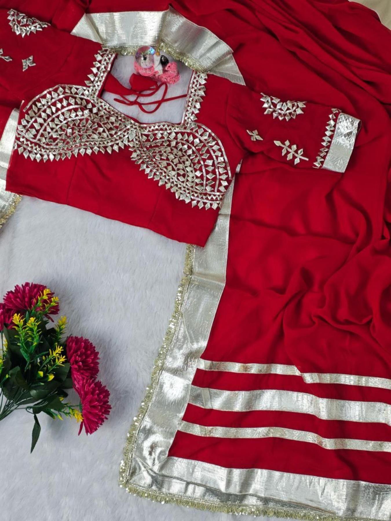 Elevate your festive wardrobe with this Ankita Lokhande Wear Saree, a stunning piece that reflects elegance, craftsmanship, and celebrity-style sophistication. Made from premium Soft CC Georgette*, this saree is adorned with Original Hand Charkhi Gotta Patti Work and a beautiful sequence lace border that adds a luxurious sparkle.