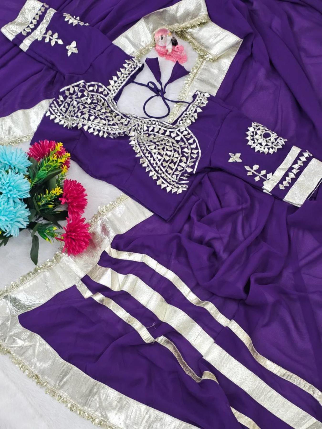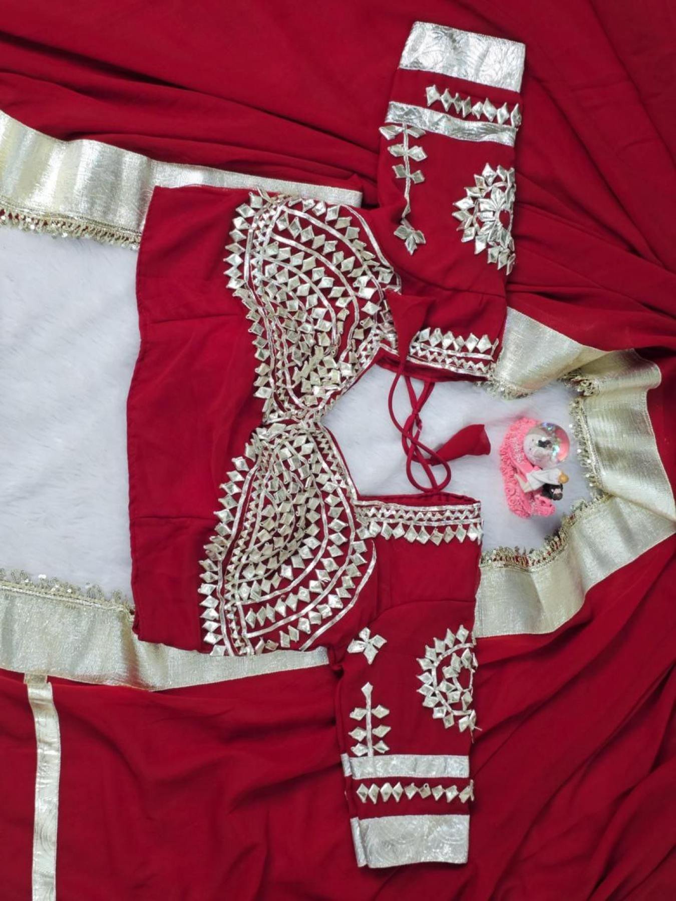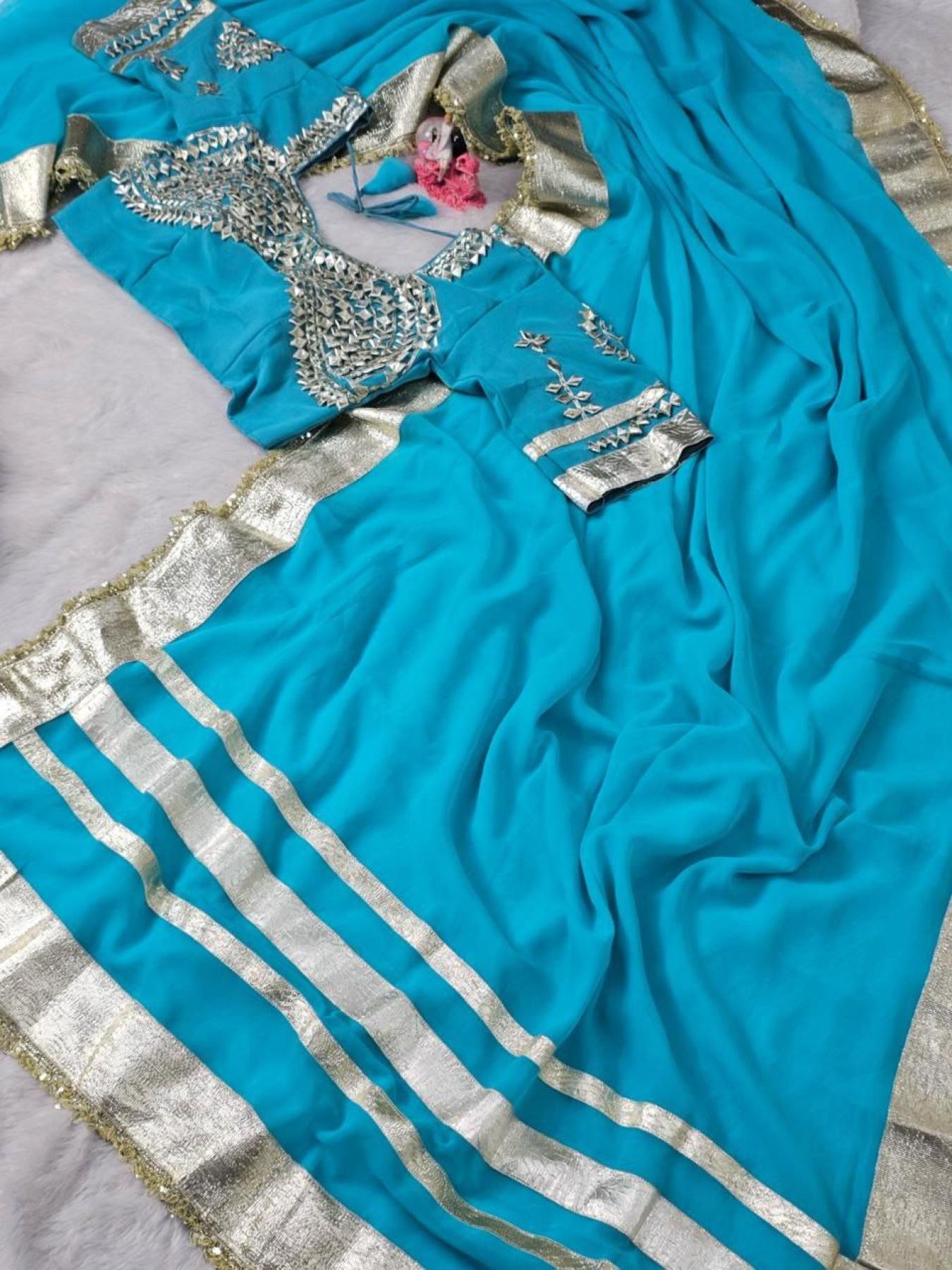 Celebrity Inspired Ankita Lokhande Soft Georgette Saree with Hand Gotta Patti Sequence Lace