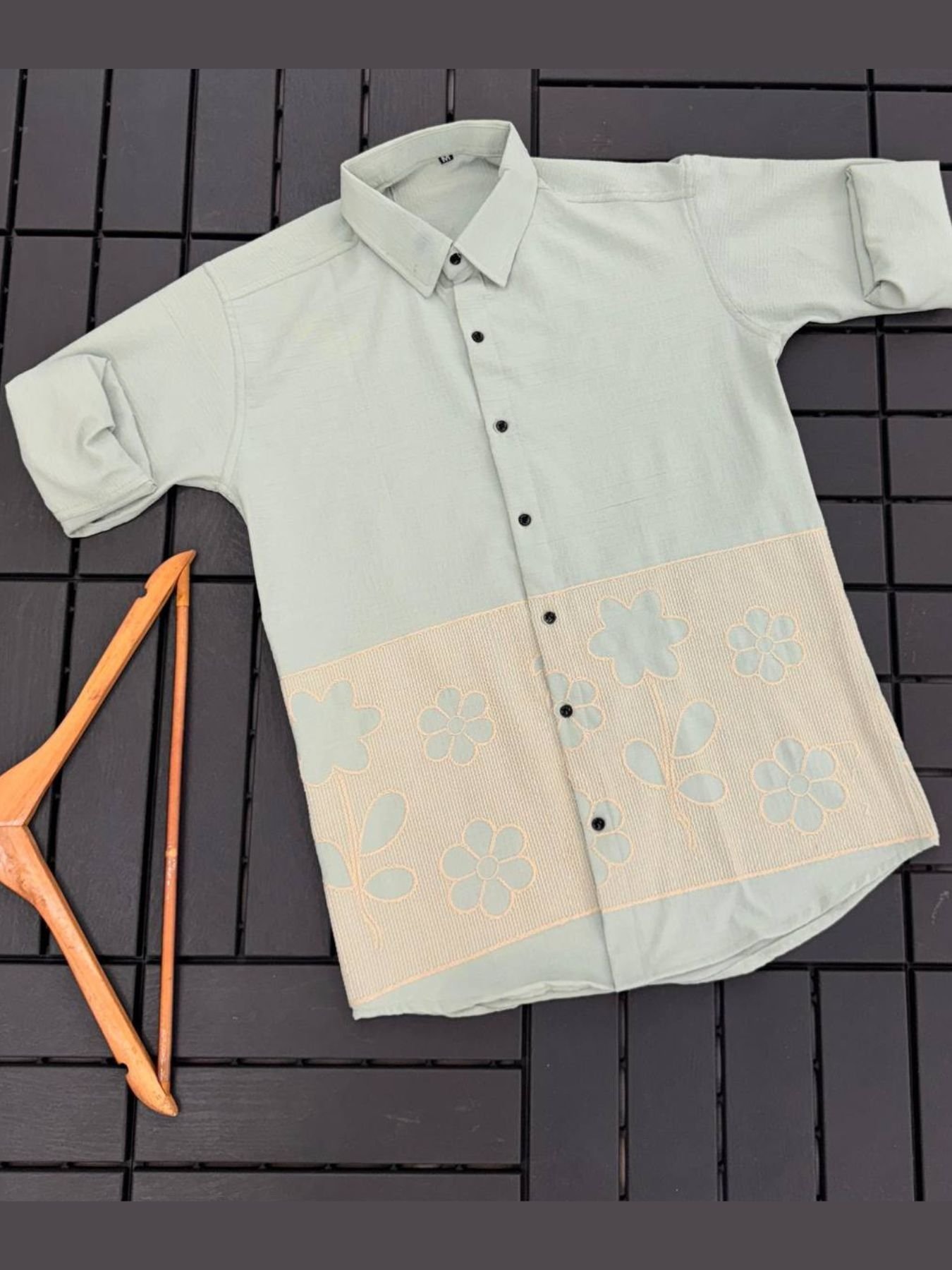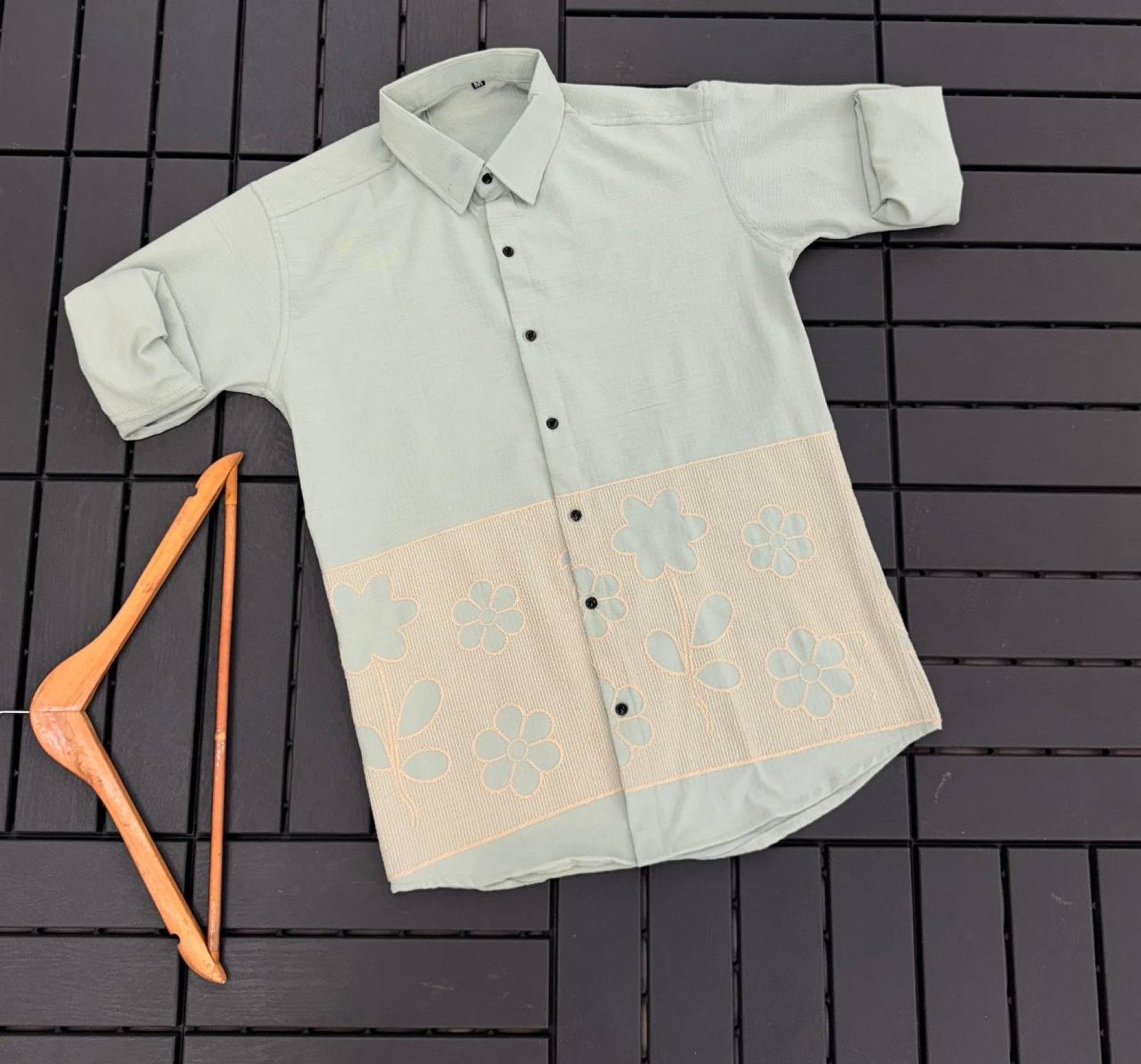 Charismatic Light Green Slim Fit Designer Shirt with Floral Embroidery