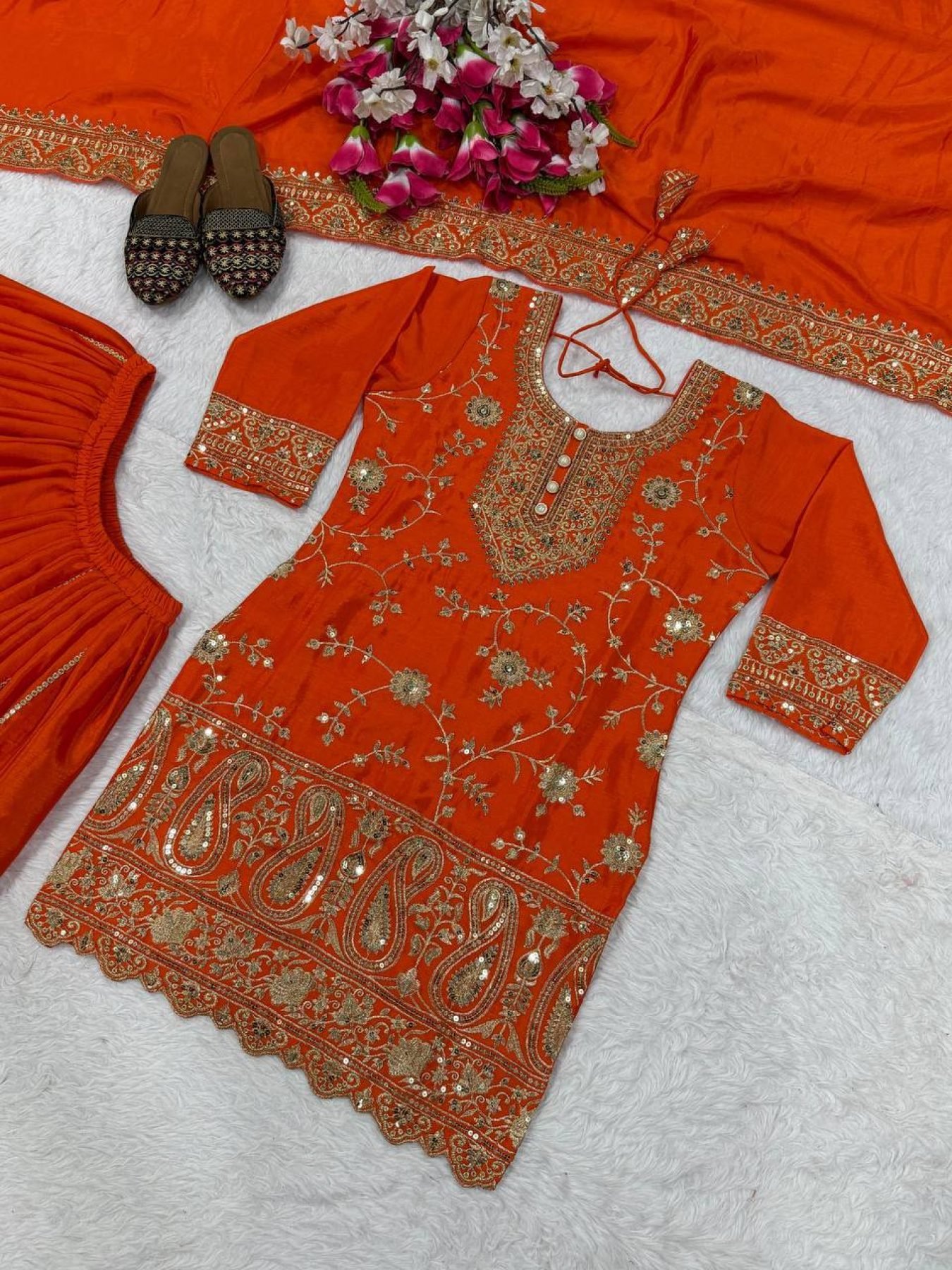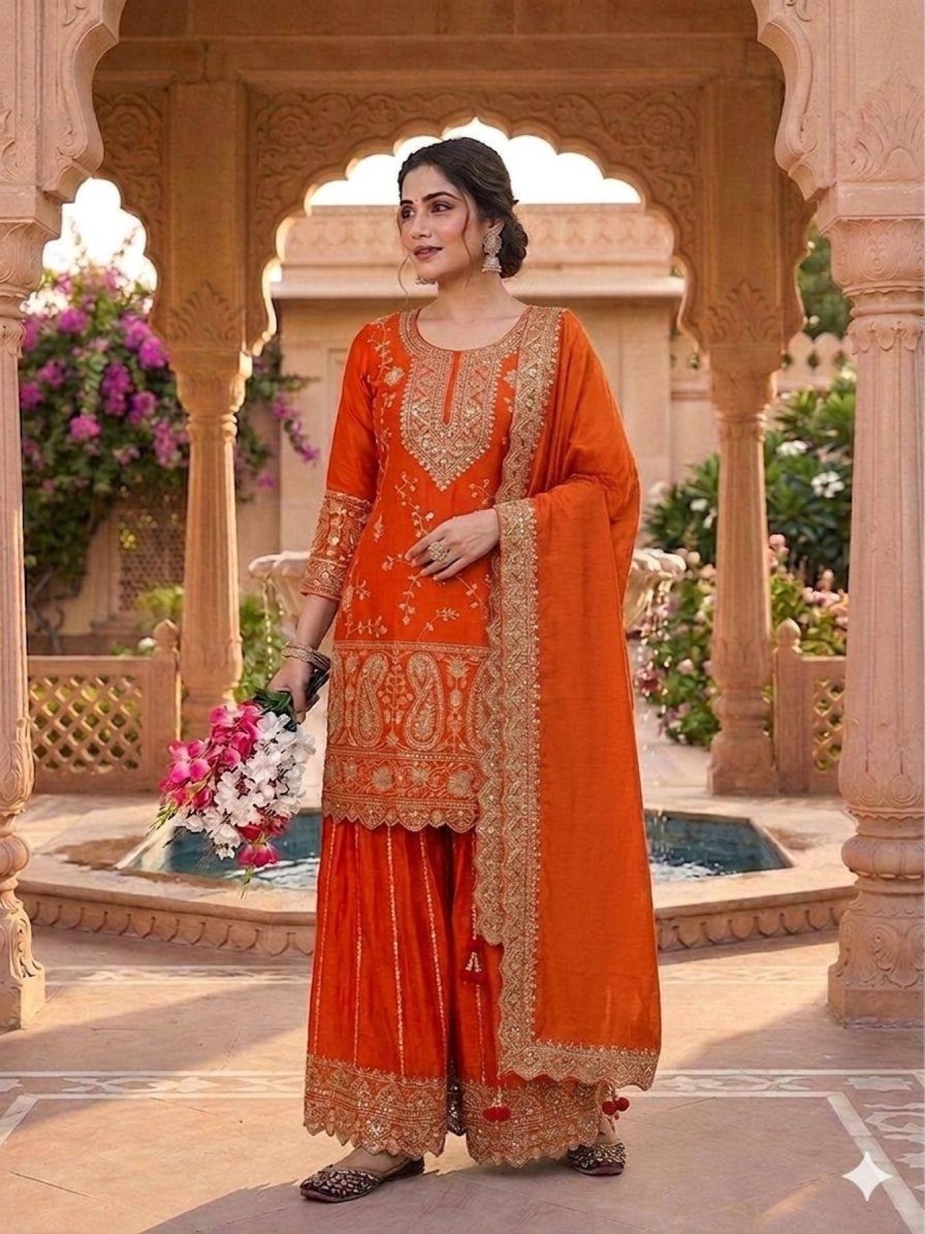 Charismatic Orange Sharara Set with Dupatta for Wedding and Festive Wear