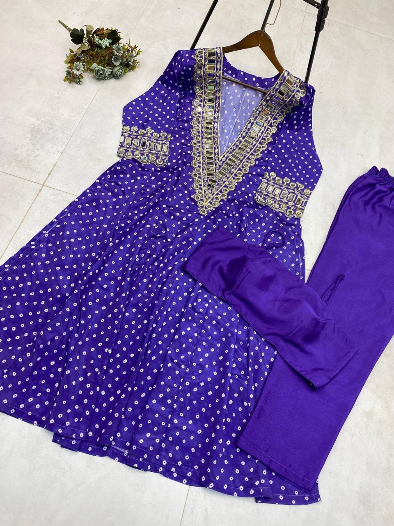Chinon Top with Real Mirror Embroidery Work Pant Blouse Set Digital Printed Kurti Set for Wedding Festive Wear