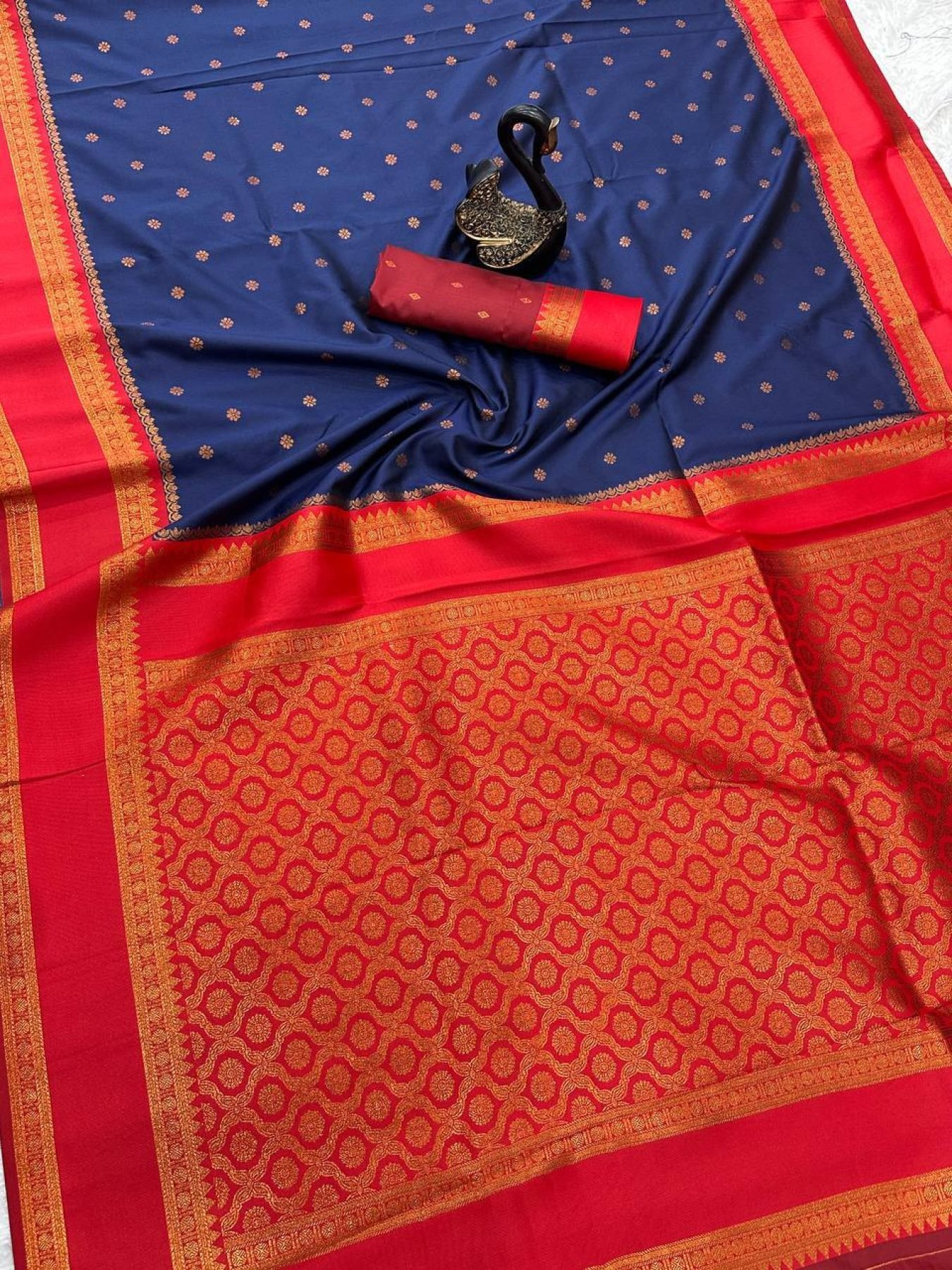 Classic Blue Silk Saree with Dual Tone Finish and Rich Zari Detailing