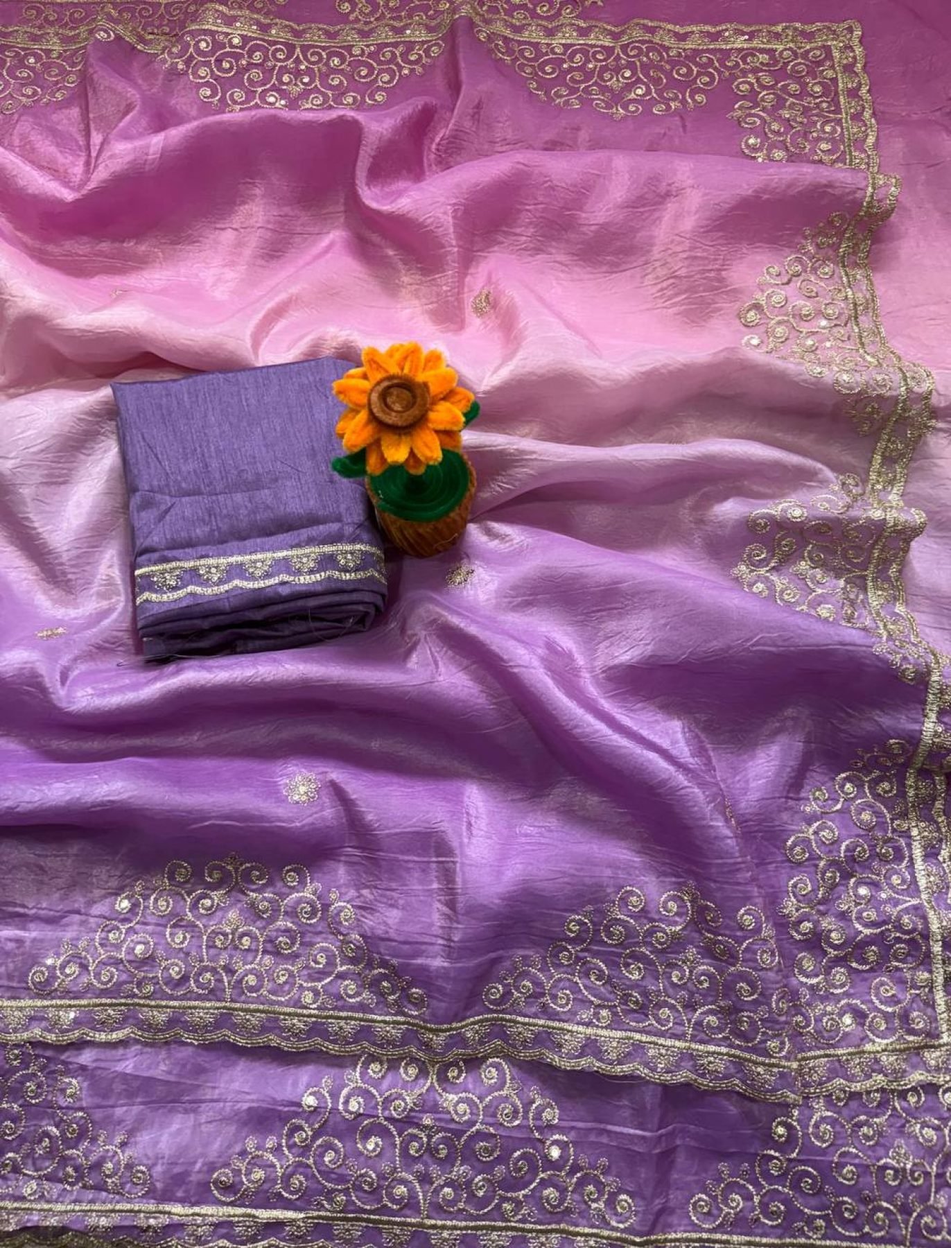 Classy Purple Gold Crush Saree with Embroidered Blouse for Party Wear