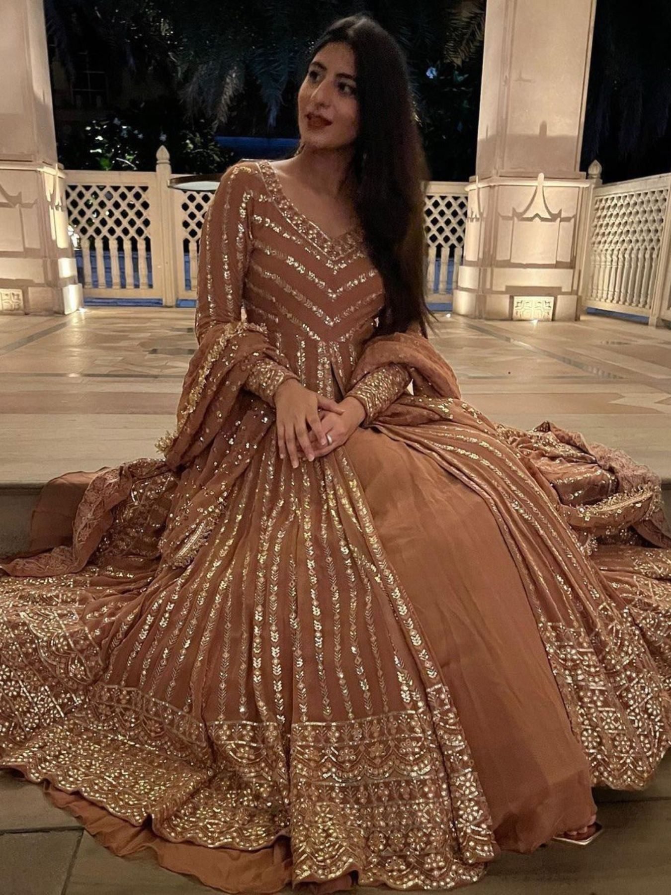 Coffee Brown Sequin Lehenga Set with Embroidered Blouse Mehendi Ready Look
