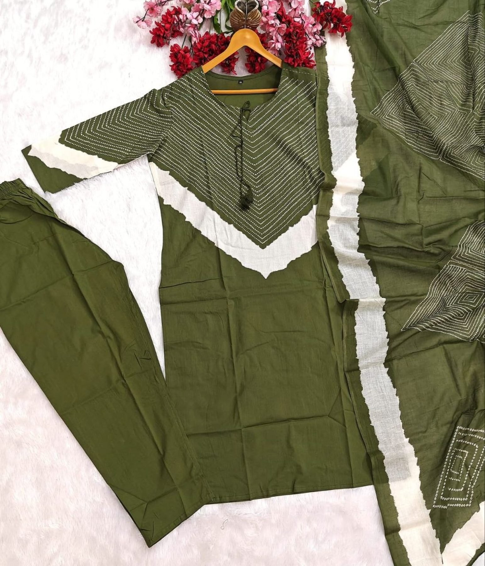 Elegant cotton kurta set featuring embroidered work with matching pants and soft malmal dupatta. Perfect for daily wear, festive occasions, and comfortable ethnic styling.