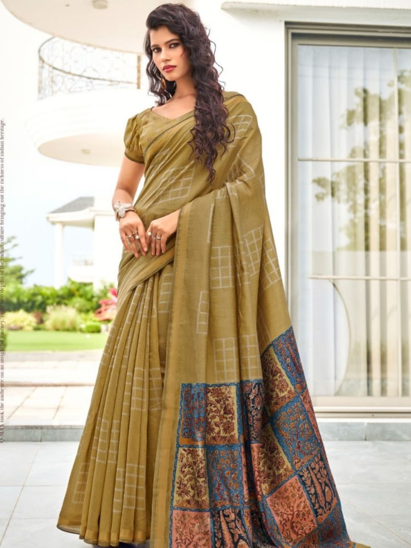 Elegant cotton silk saree with soft crush texture offering a lightweight and comfortable feel. Perfect for daily wear, office wear, and simple festive styling.