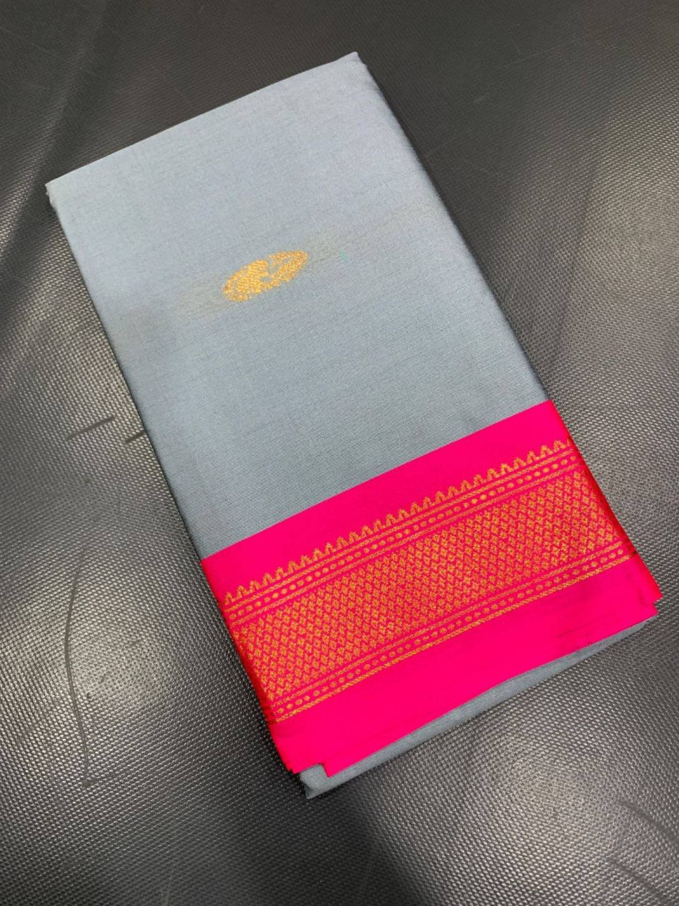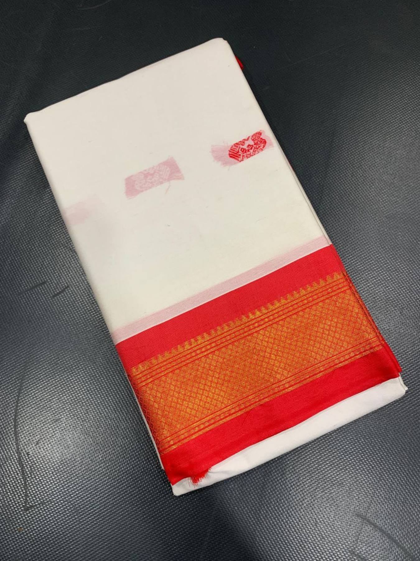 Cotton Silk Saree with Gold Weaving Border and Contrast Blouse For Regular Wear
