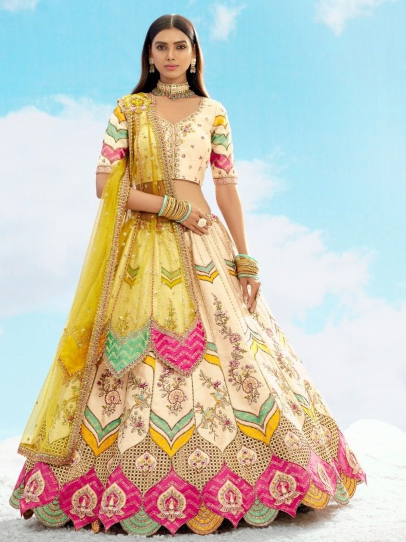 Cream Color Embroidered Wedding Lehenga Choli With Dupatta