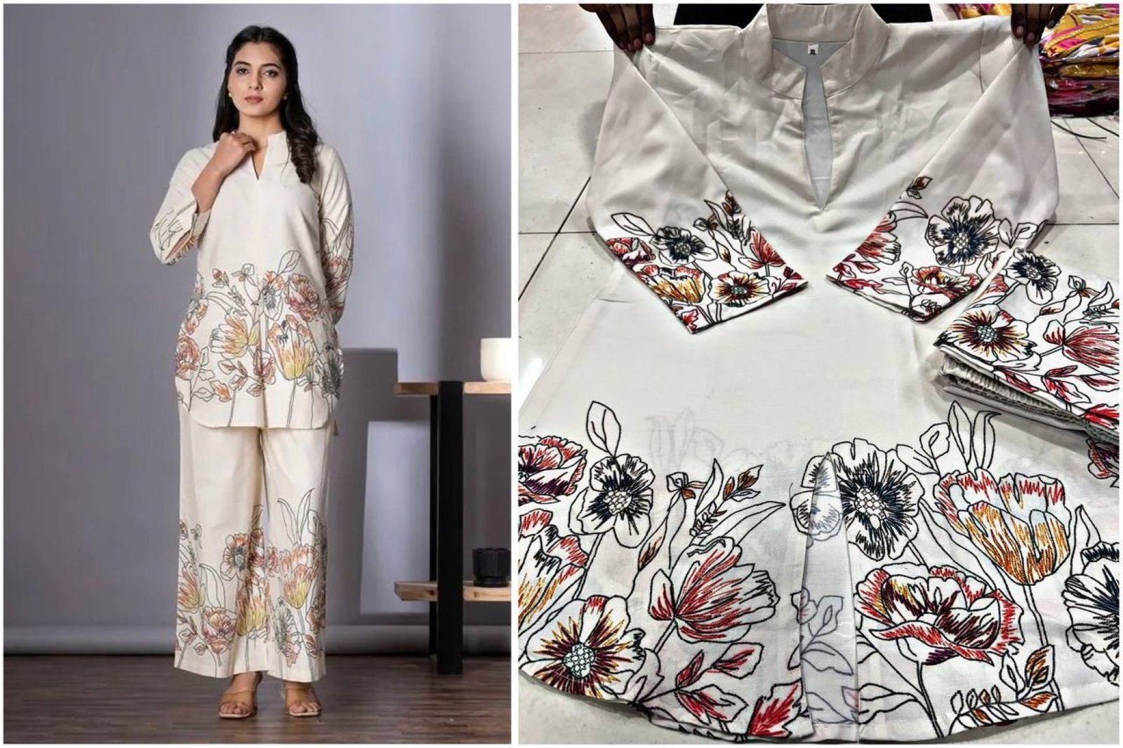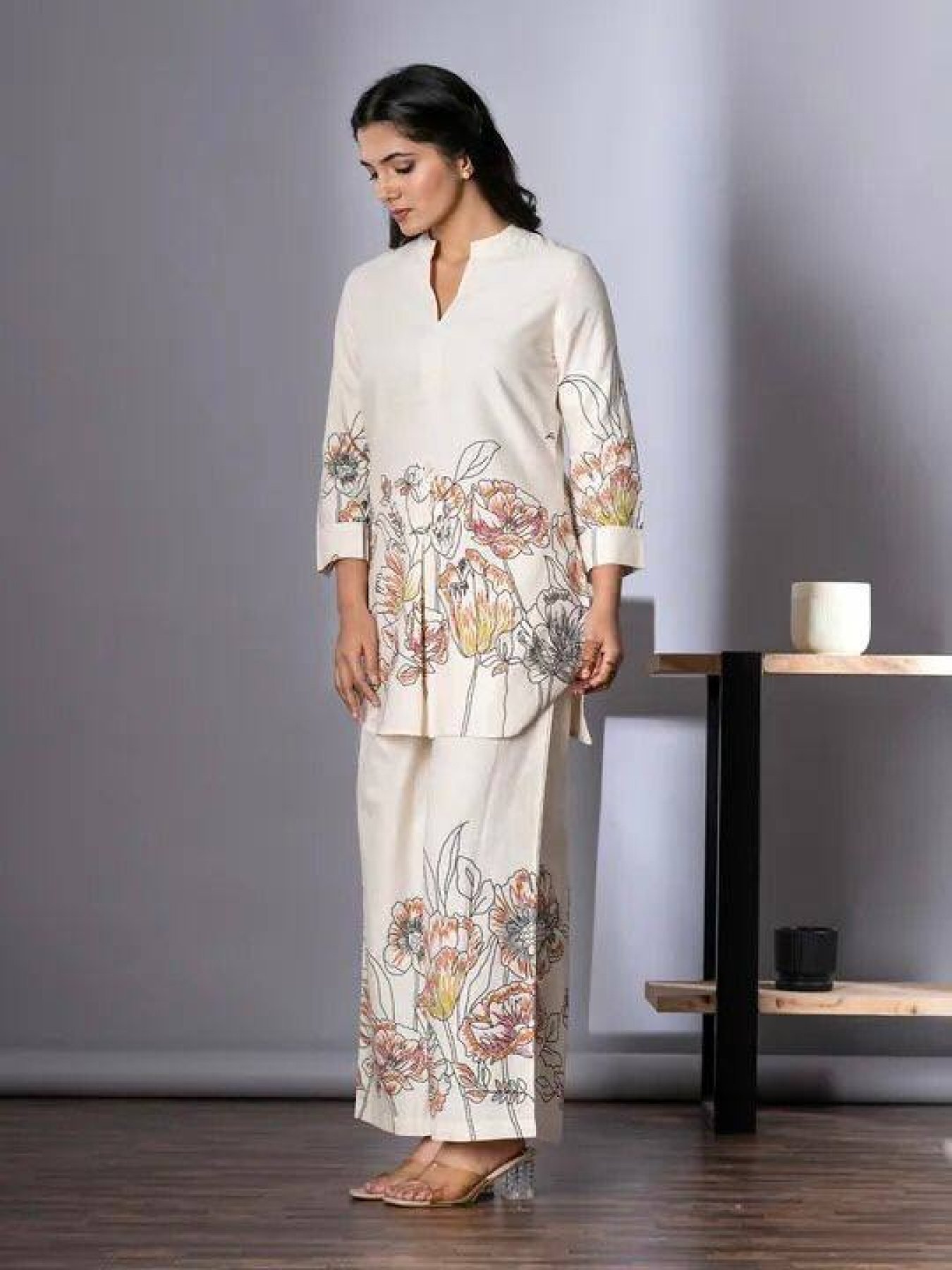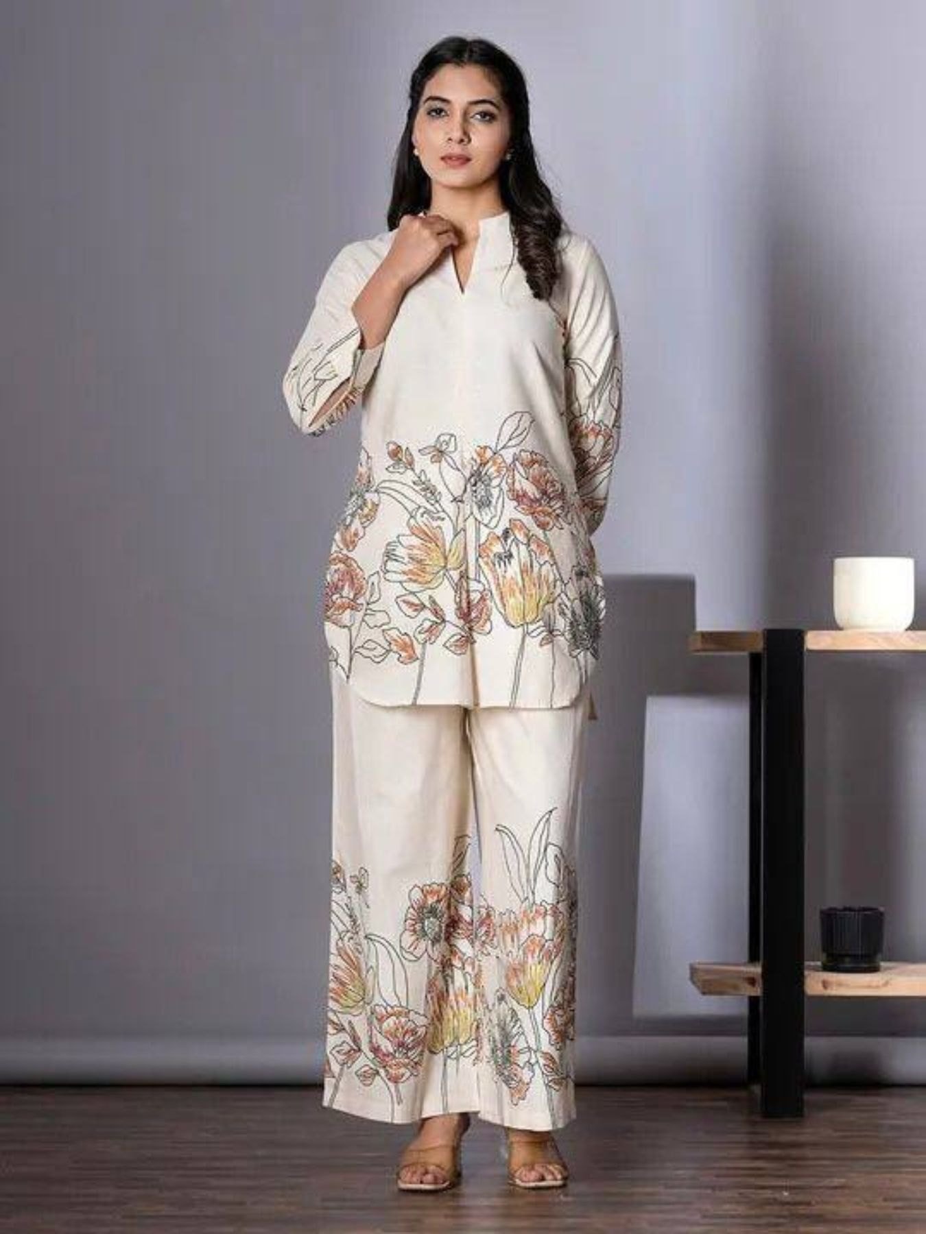 Cream Cotton Silk Co ord Set with Colorful Digital Prints Ideal for Daily Wear