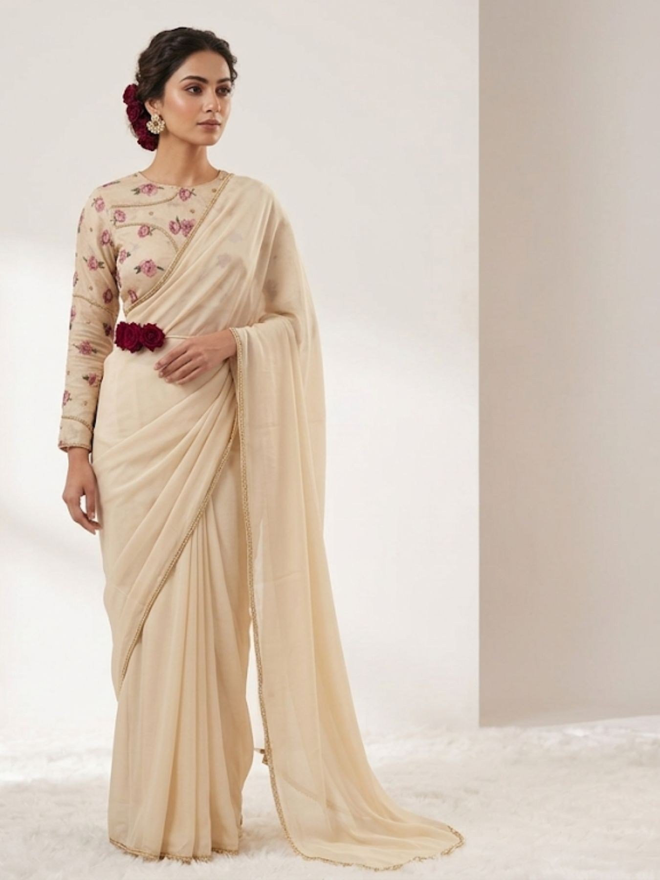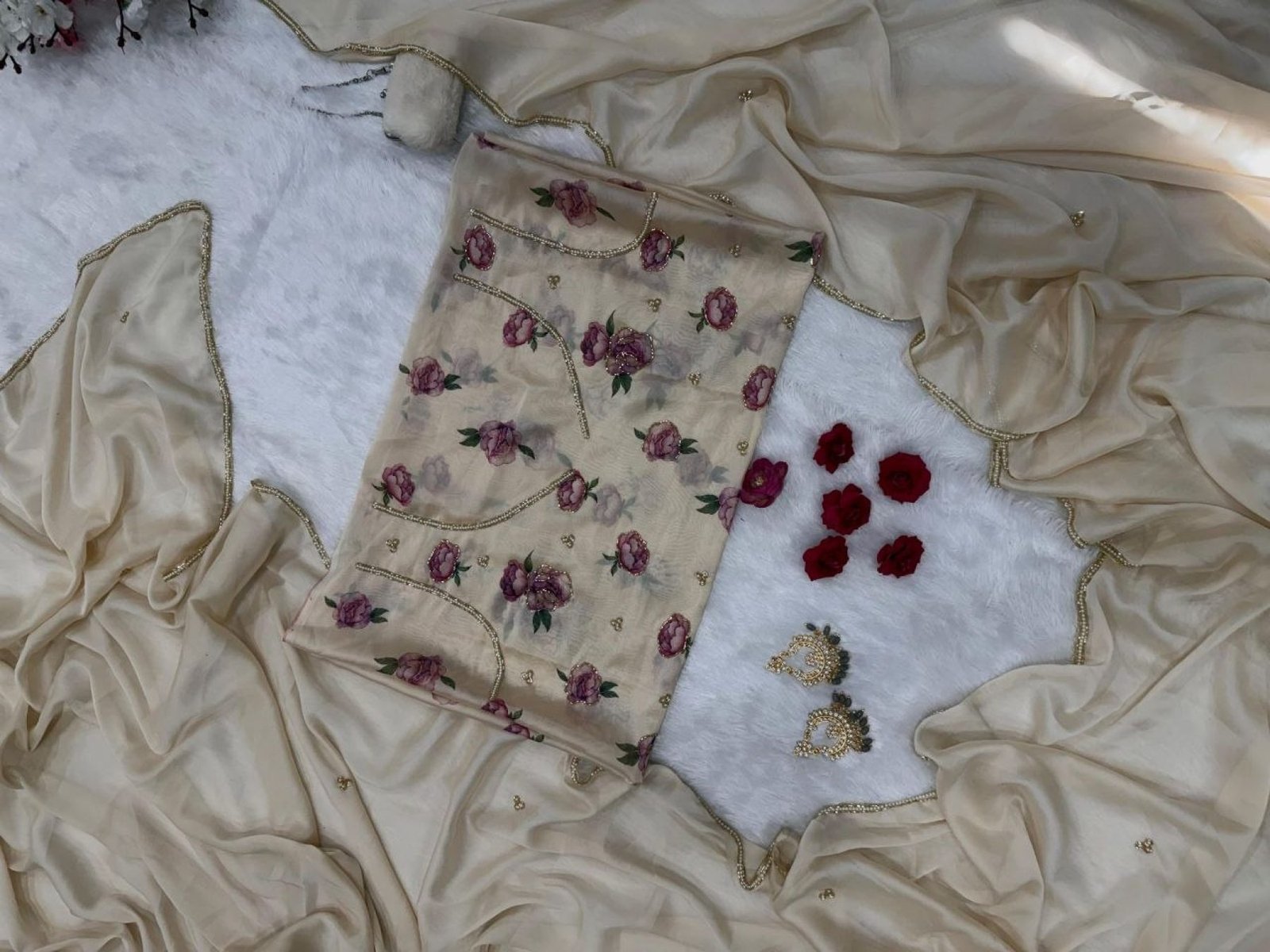 Work: Floral Print with Beads, Pearl and Katdana Handwork