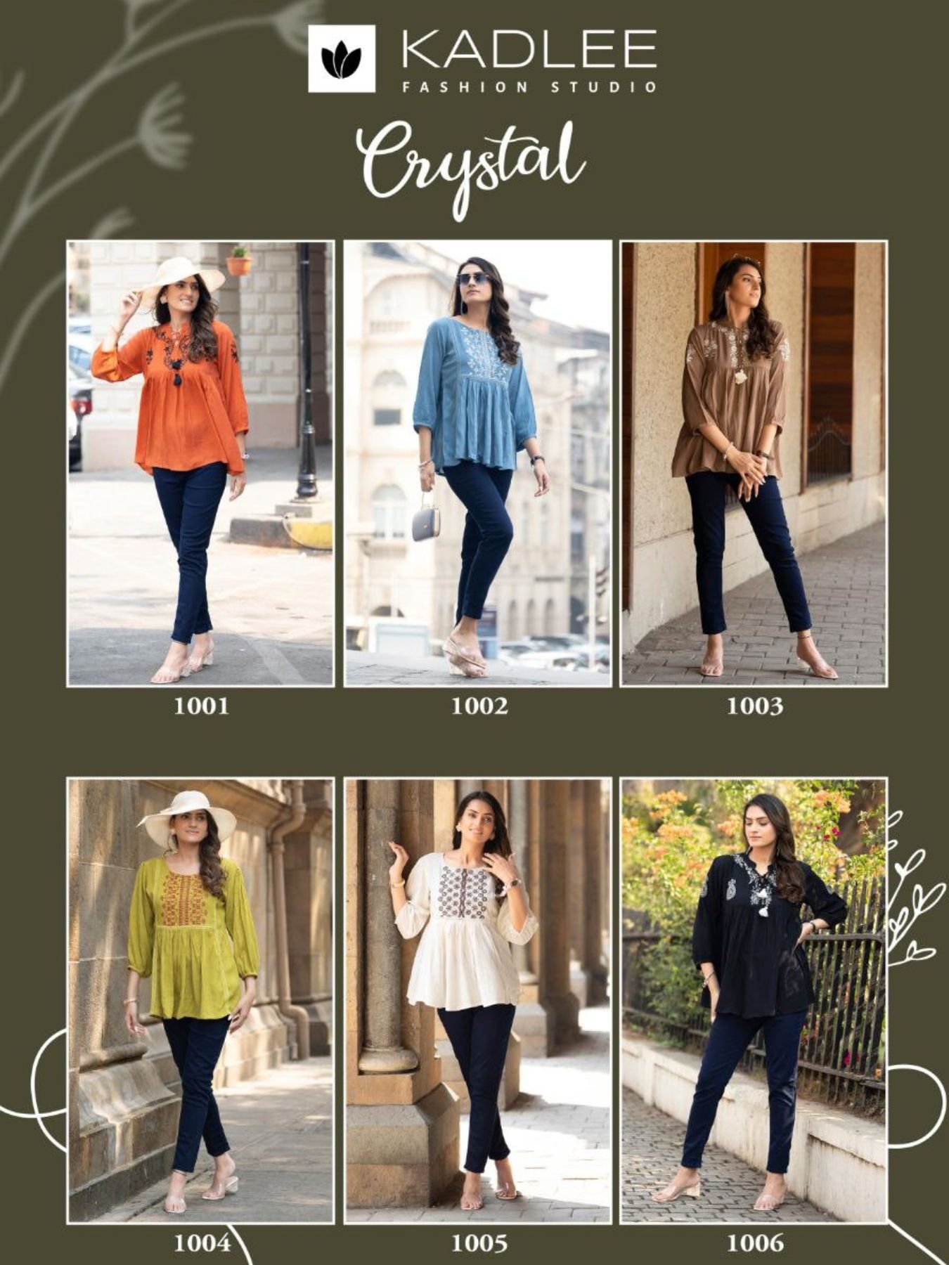 Presenting the elegant Crystal Catalog Set-to-Set Collection, featuring 6 premium designs in Rayon Wrinkle fabric. Each top is beautifully enhanced with fine thread work and delicate handwork for a refined ethnic appeal. Available in a complete size range from S to 3XL – perfect for resellers and wholesale buyers.