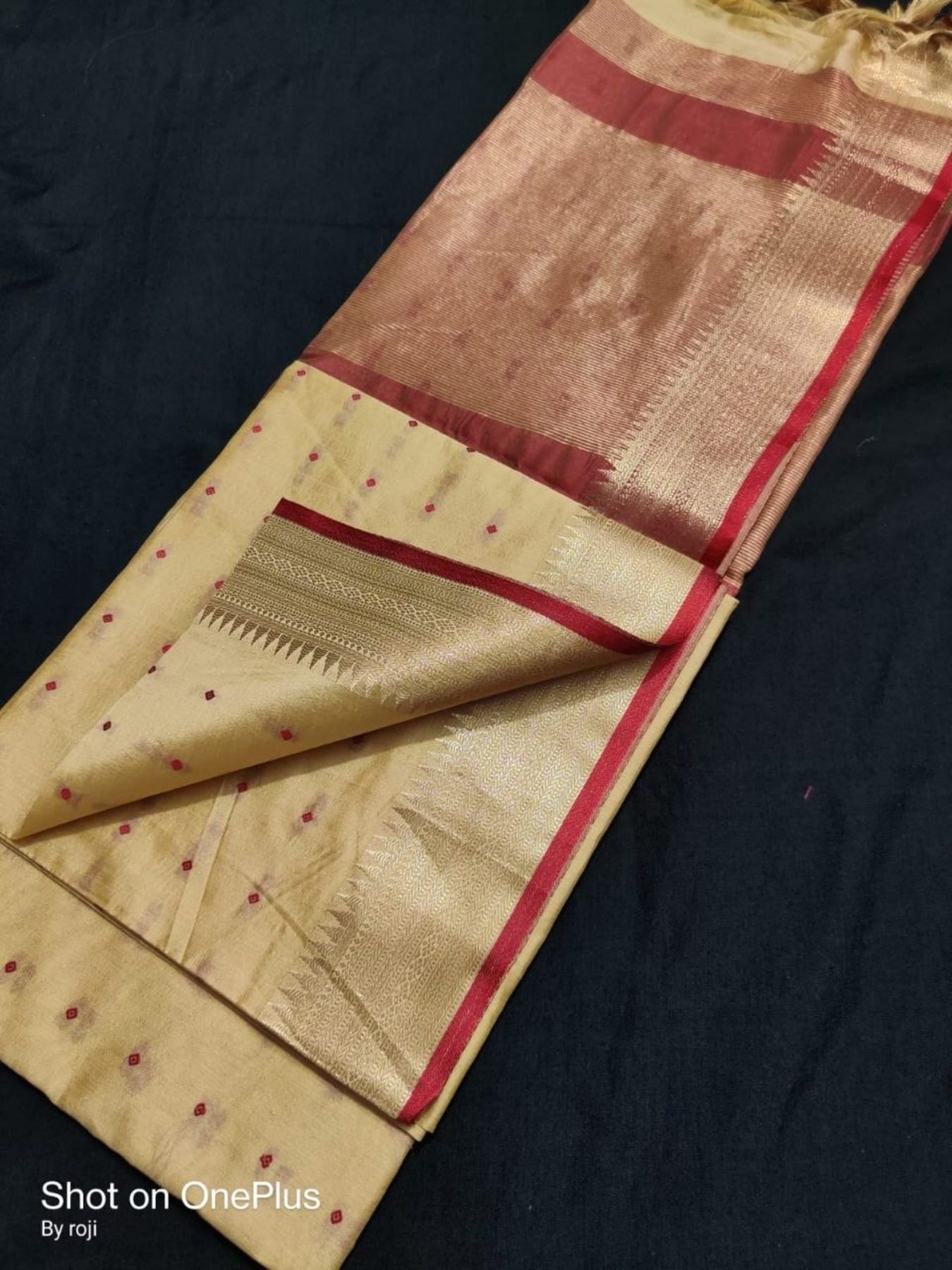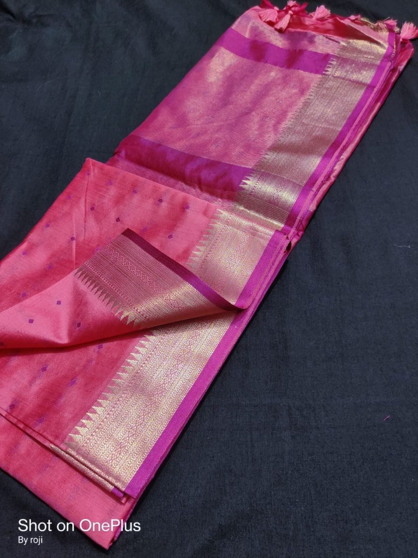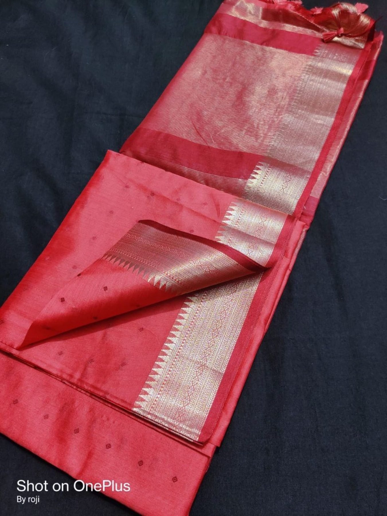 This Pure Silk Feel Fabric Gives A Bandhani Butti All Over The Saree.
