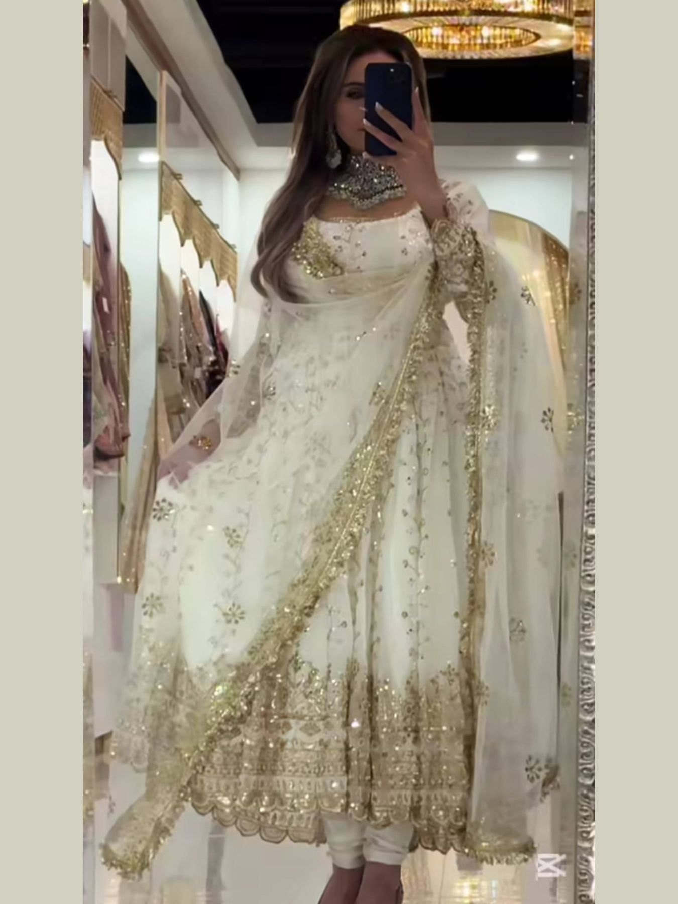 Size ChartThis newly launched Designer Anarkali Suit is crafted in luxurious Heavy Faux Blooming Georgette, adorned with 5mm sequins and delicate embroidery for a premium festive appeal. The Anarkali flaunts an impressive 3.5-meter flair with a smooth micro cotton inner, offering both elegance and comfort. Fully stitched with margin up to XXL and included cups, it ensures a perfect ready-to-wear fit. Complemented with a beautifully embroidered Georgette dupatta and matching chudi pant, this set is ideal for weddings, receptions, parties, festivals, and premium wholesale collections for resellers and export buyers.