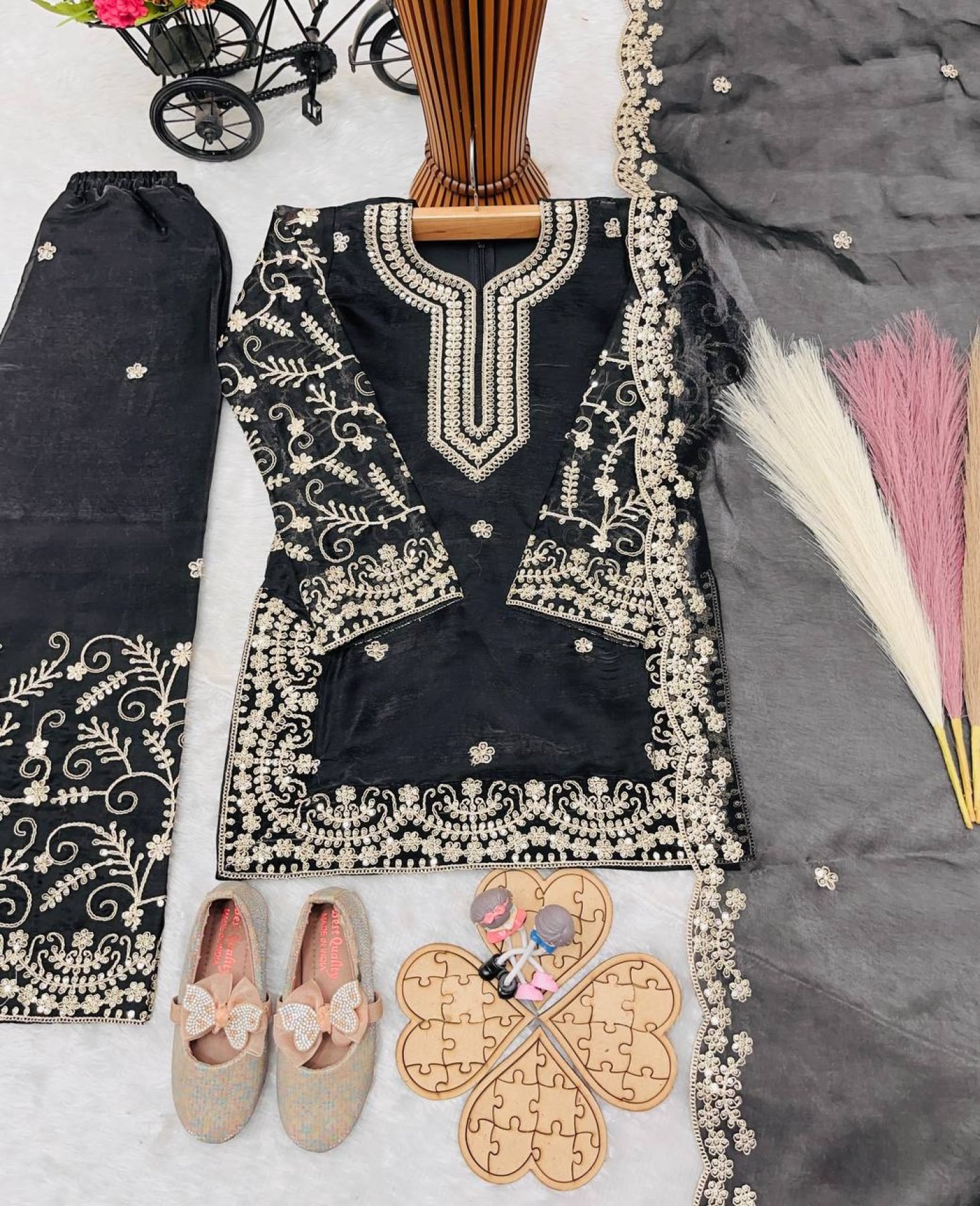 Dazzling Black Kids Eid Special Sharara Set with Heavy Embroidery Work