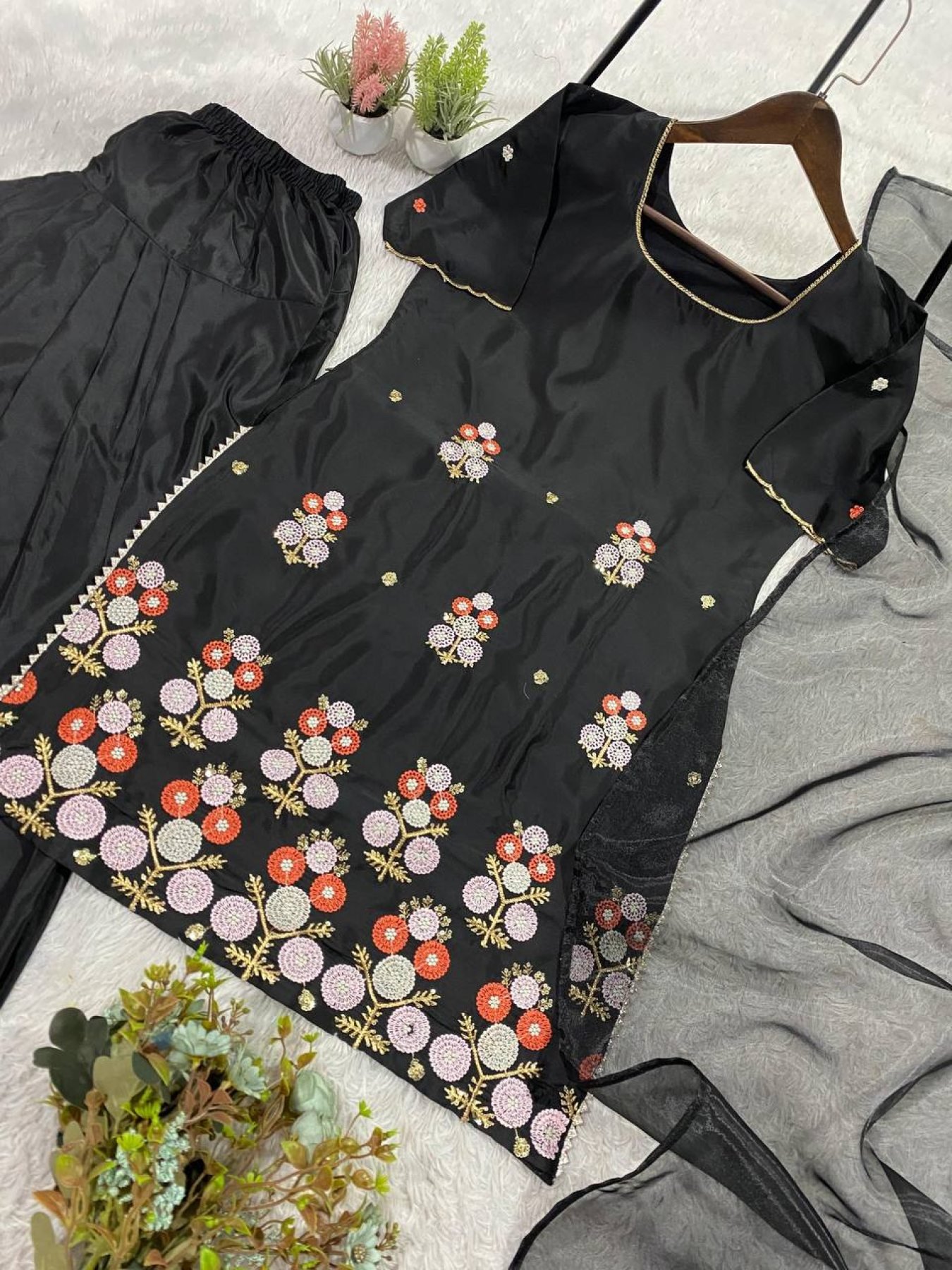 Dazzling Black Premium Quality Suit Set for Party Wear Women