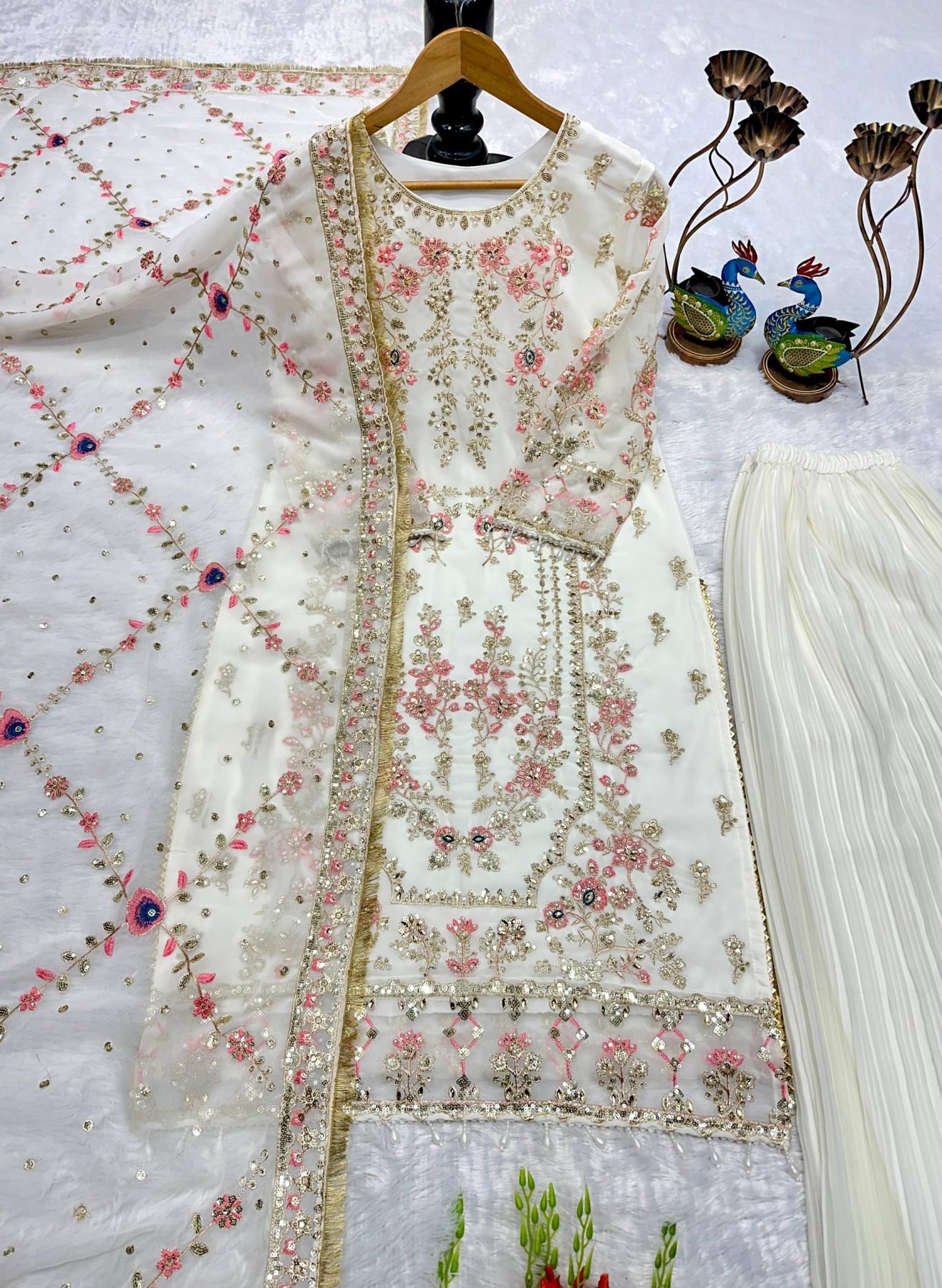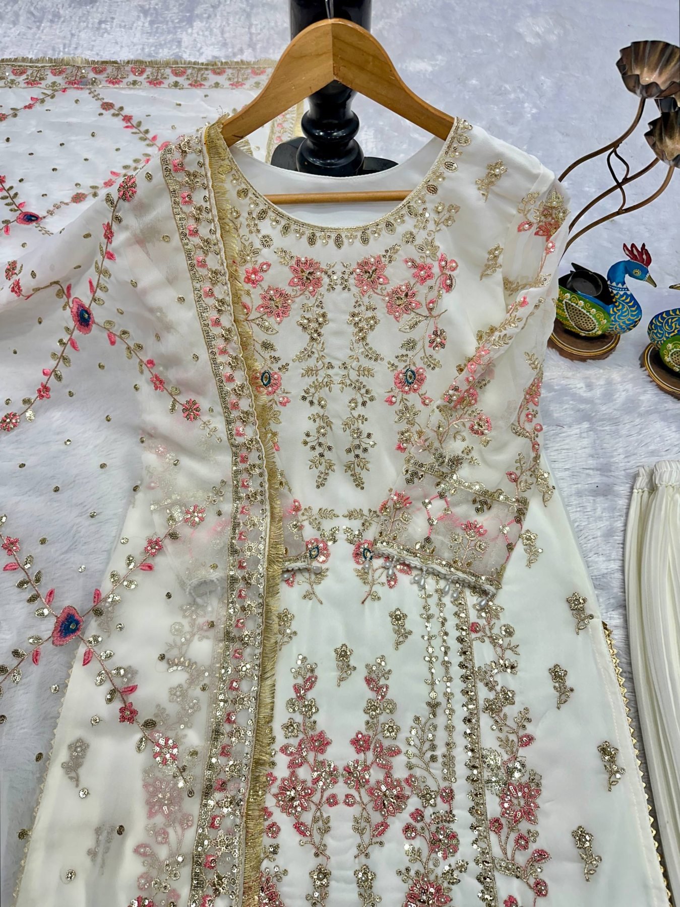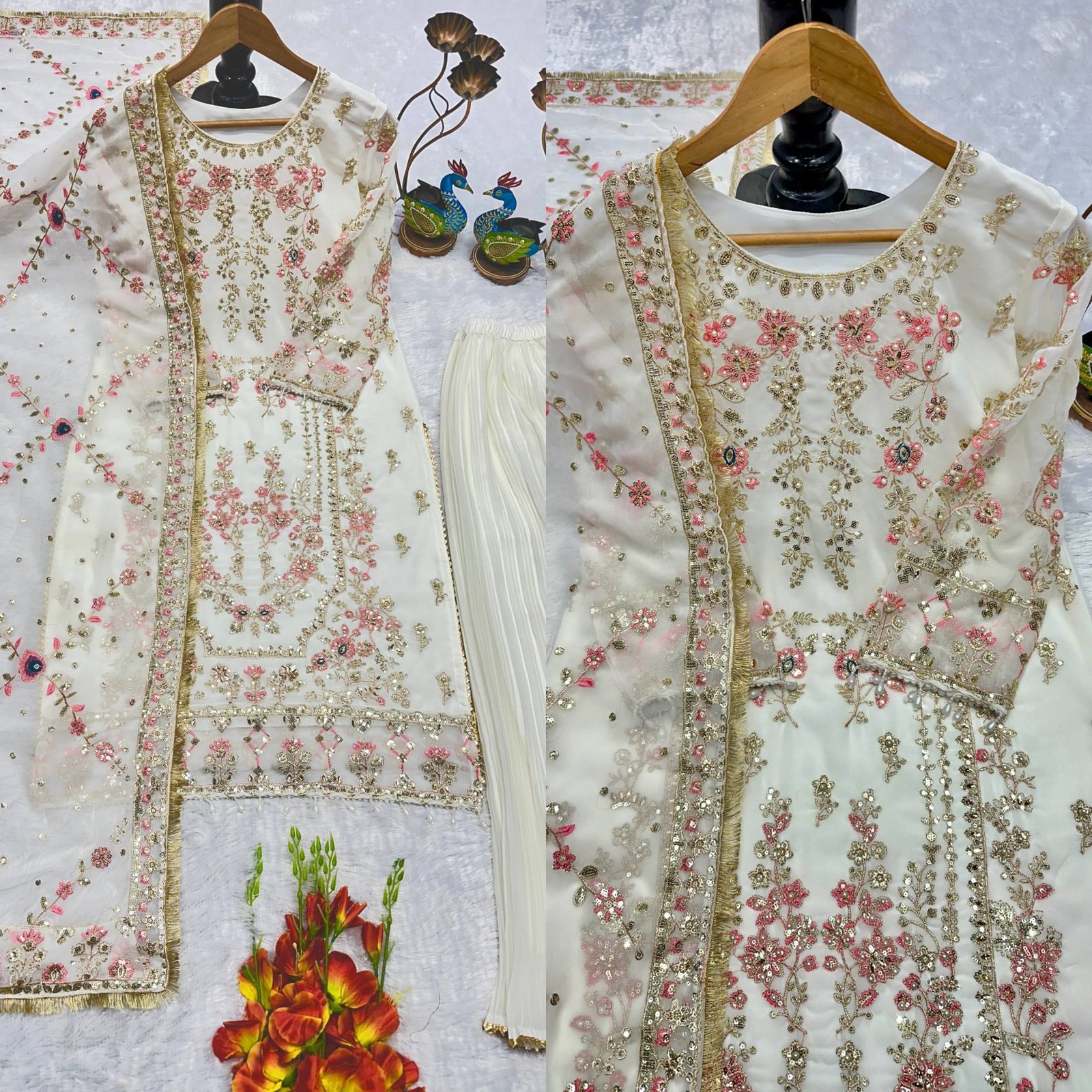 Dazzling White Fox Georgette Suit Set with Mirror Work and Dupatta